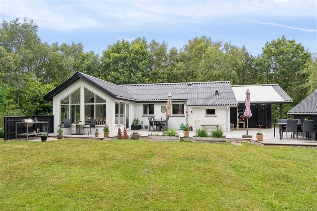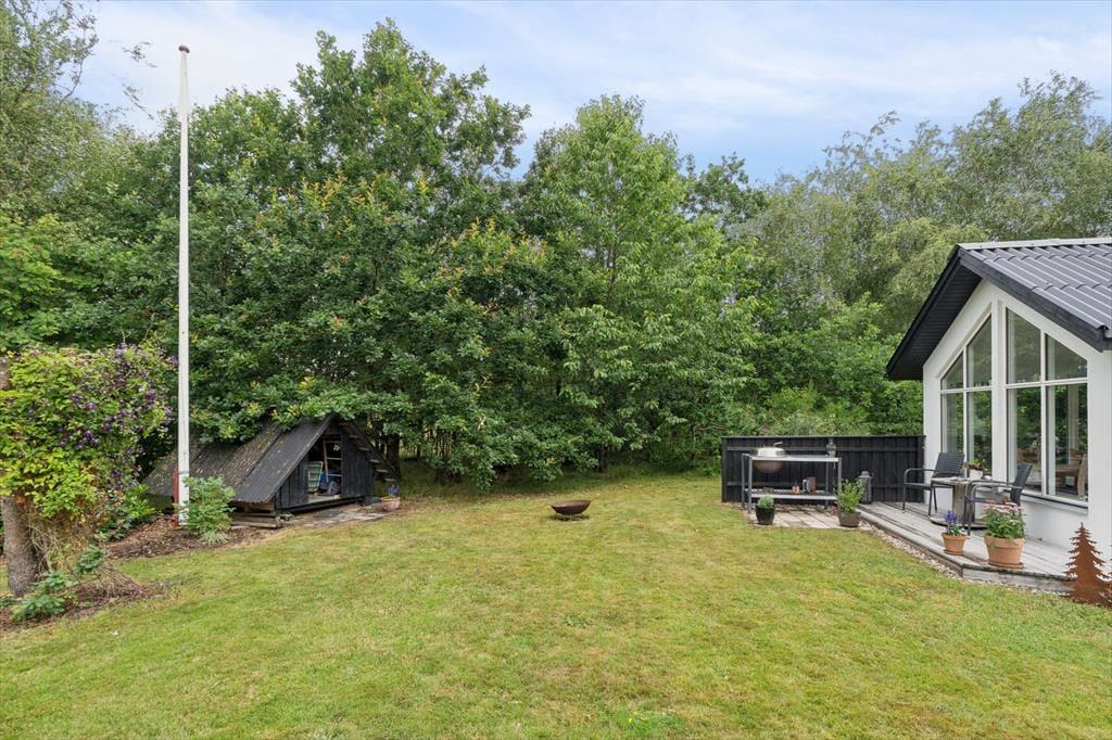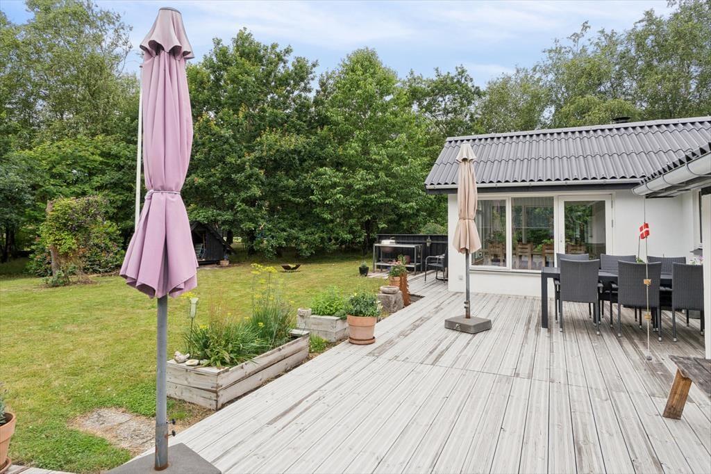 Sommerhusets terrasse inviterer til mange timer under åben himmel. Her kan du nyde solens første stråler med en kop kaffe i hånden eller afslutte dagen med en kølig forfriskning, mens aftensolen farver himlen over Amtoft. Haven er grøn og indbydende – et oplagt sted til leg, boldspil eller en stille stund i skyggen. Når vejret viser sig fra sin bedste side, er det oplagt at tilbringe det meste af dagen udenfor. Du kan tænde op i grillen, brede tæpperne ud på græsset og lade sommerstemningen sænke sig, mens fjordbrisen bringer dufte og lyde helt tæt på. Terrassen ligger godt i læ og giver masser af muligheder for både solbadning og hyggelige måltider i det fri.