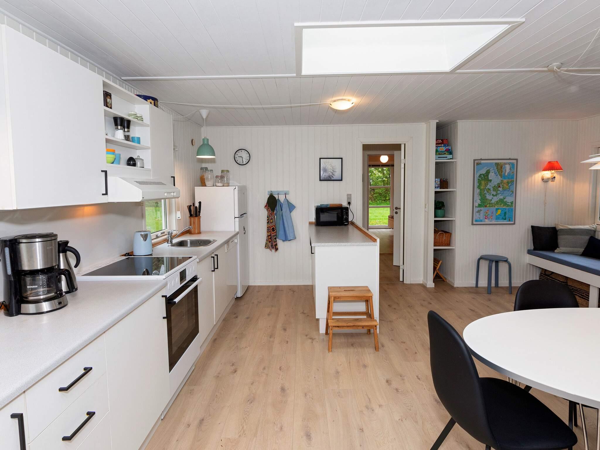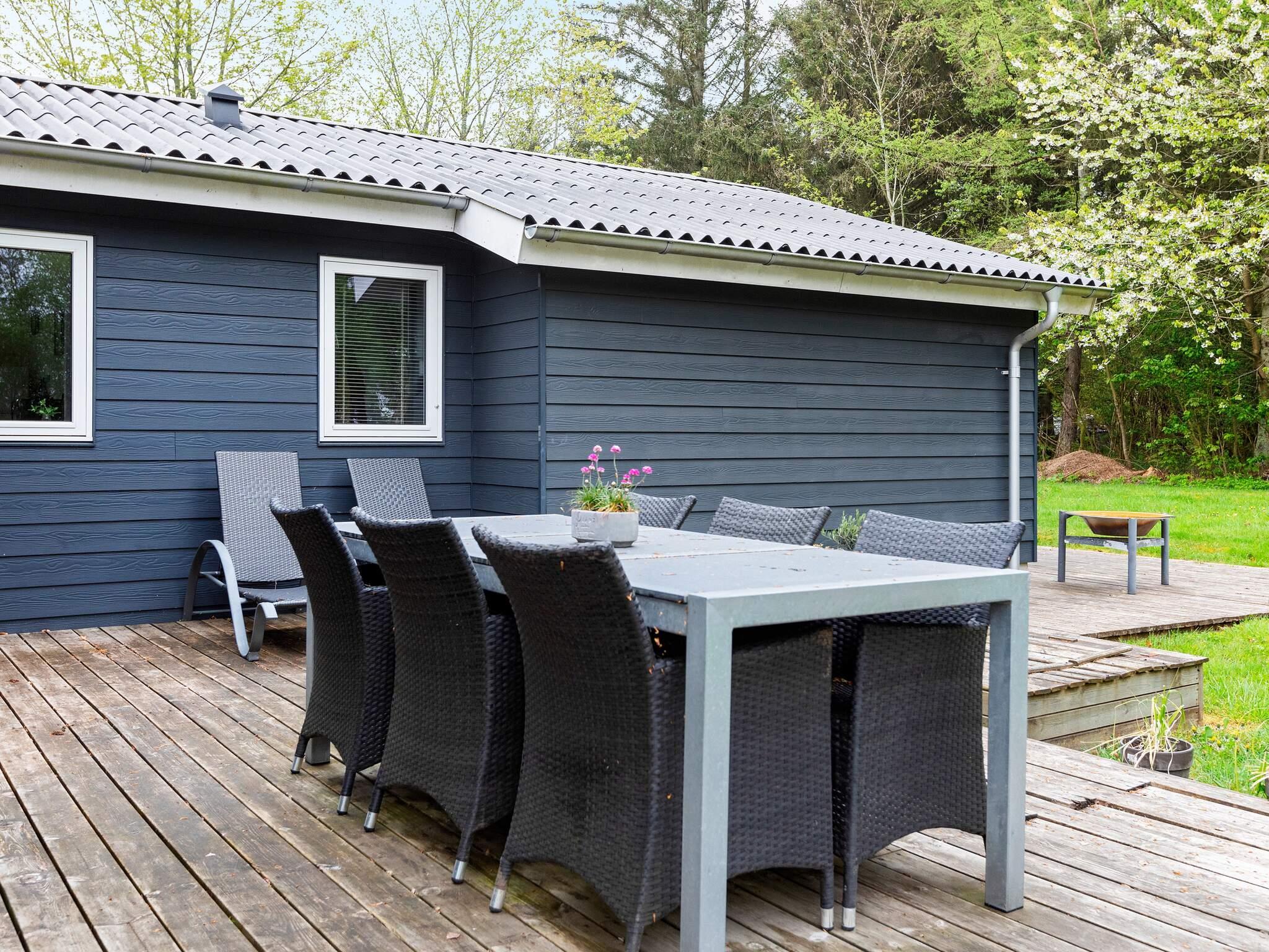 Sommerhuset har en dejlig indretning med dejlige fællesrum, hvor I kan samles omkring spil, TV, leg og almindelig afslapning. Der er varmepumpe, som gør forbruget billigst muligt og mere energivenligt. Huset ligger kun ca. 200 meter fra vandet. Grunden er på ca. 1600 m2, så der er rig mulighed for boldspil, leg og alle udendørs aktiviteter. Her er også sandkasse samt gynge til de yngste feriegæster. Rundt om en del af huset findes dejlig terrasse – en del af den er overdækket. Her kan I nyde de dejlige sommeraftener, som forlænges under halvtaget med grillaftener. Udlejes ikke til ungdomsgrupper.