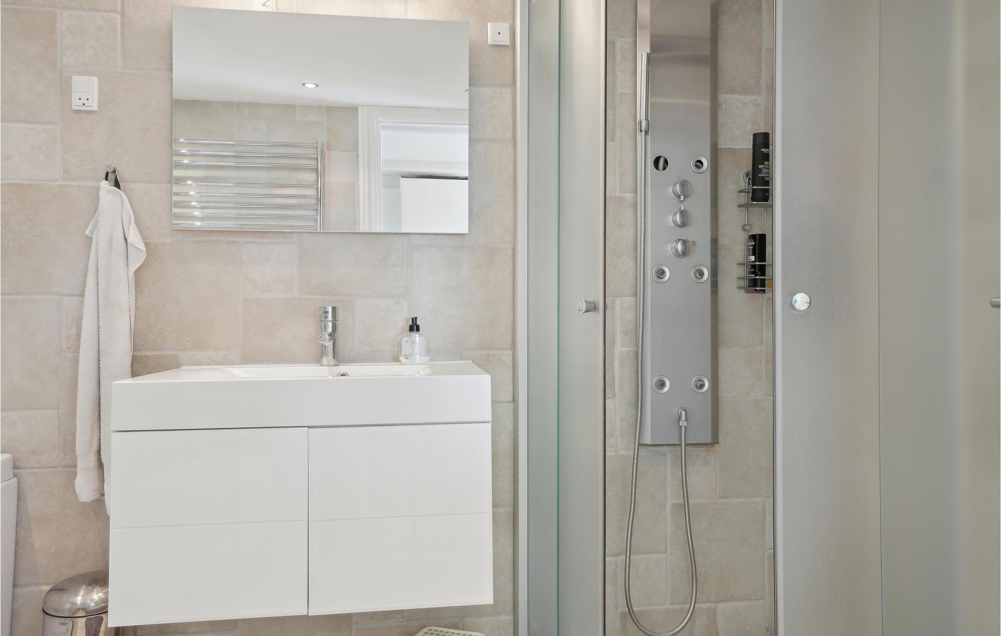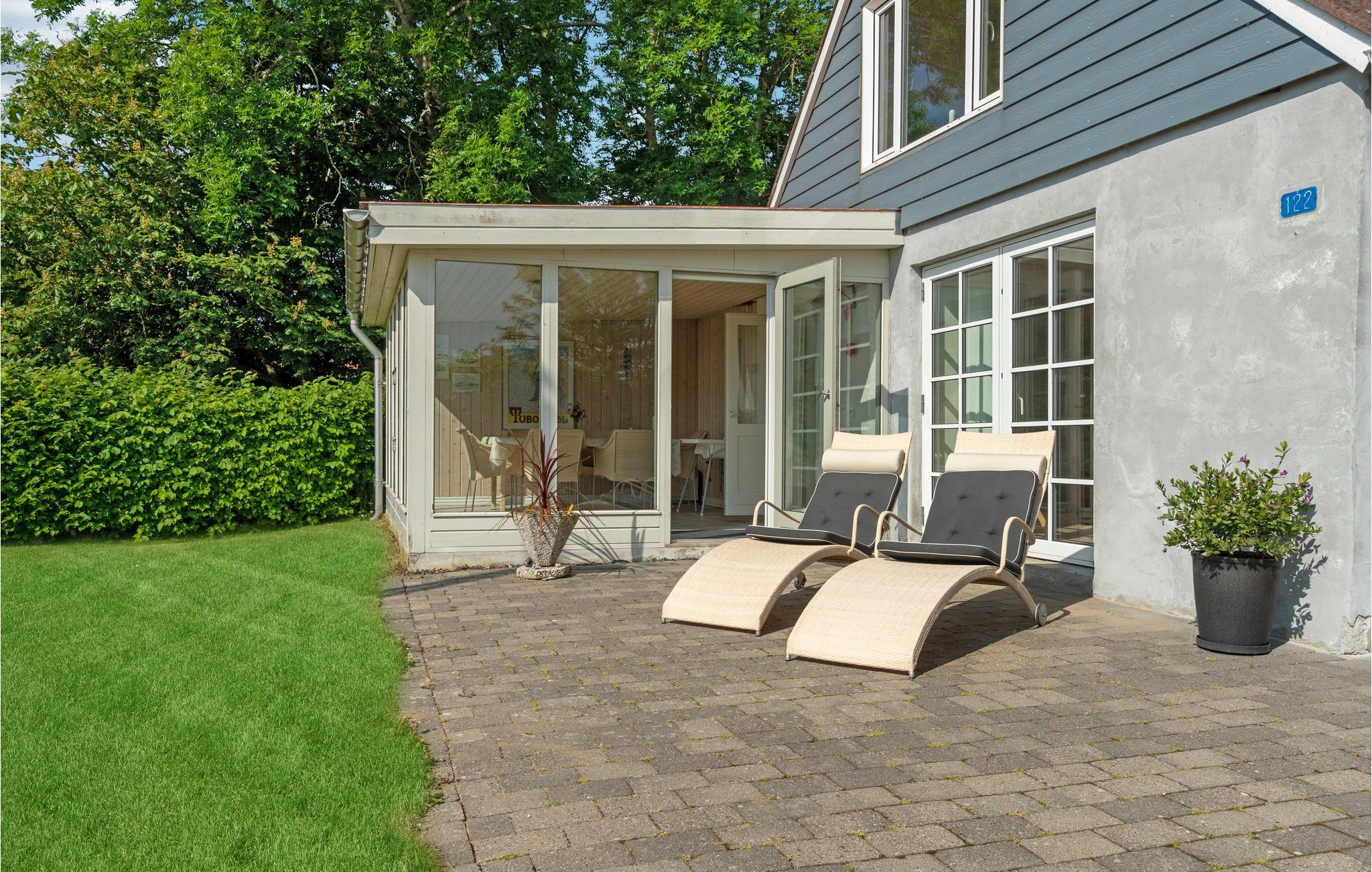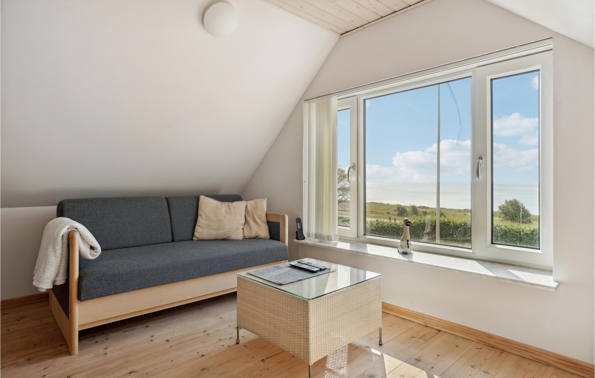 Glæd jer til en skøn familietid i dette dejlige feriehus i to etager. Husets atmosfære er gennemsyret af et bevidst farvevalg. Stedet er en drøm af hvid og beige samt store vinduer som perfekte ingredienser til en følelse af ro, varme og balance. Den opvarmede havestue med panoramavinduer er et helt perfekt sted til dejlige familiemåltider og brætspilshygge. Vinduerne bringer naturen og smukke solnedgange indenfor. På 1. sal finder I endnu et hyggeligt opholdsområde. I kan også tage maden med ud på terrassen og nyde en solbeskinnet morgenmad med udsigt til fjord og grønne trækroner. Børnene har sikkert ikke tid til at sidde alt for længe ved havebordet, for der er en dejlig græsplæne at boltre sig på. Efter morgenmaden kan I gå ned til den familievenlige sandstrand, hvor I kan bygge sandslotte, forfriske jer i vandet eller kaste fiskesnøren ud.
