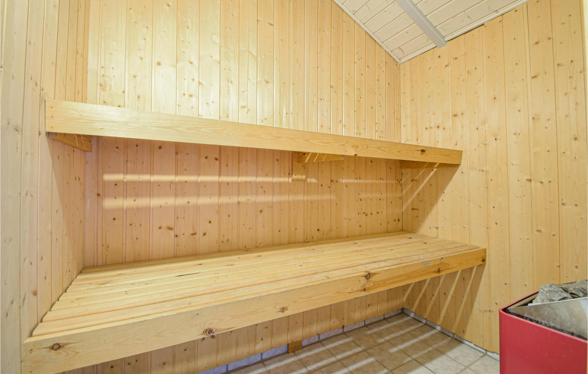 Hyggeligt træhus nær Andkær Vig Strand med fjordudsigt, sauna og spabad til afslapning.
