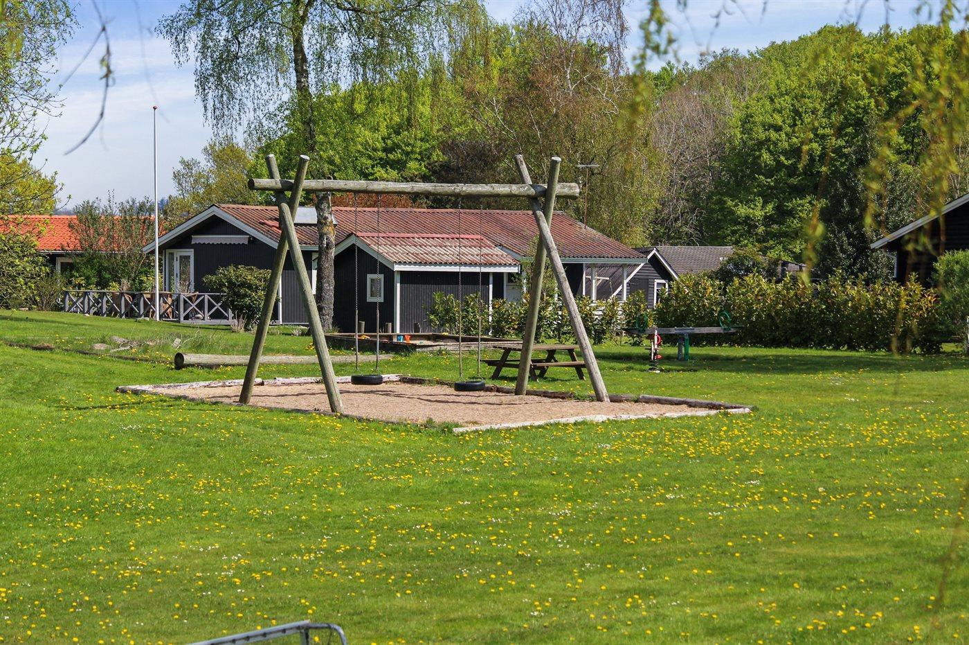 Ferieboligen er beliggende på en 600 m² stor naturgrund. Der er 250 m til fjorden. Der er en badebro i nærheden. Nærmeste forretning er beliggende i en afstand af 4000 m. Til ferieboligen hører 40 m² terrasseareal. Desuden er der 21 m² overdækket terrasse. Der er redskabsrum. Udendørs vask. Udendørs bord. Parkering ved ferieboligen.