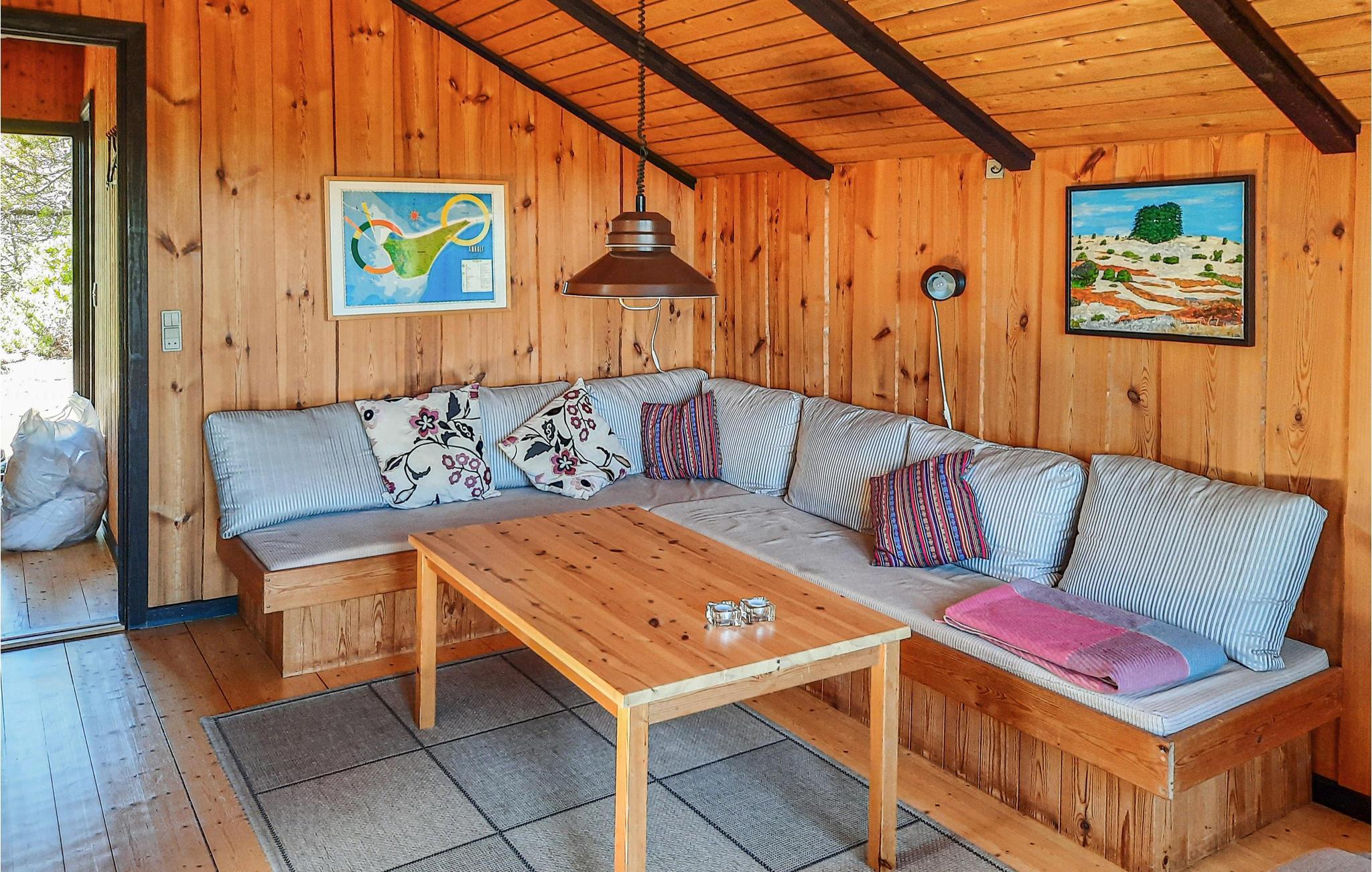 Dette sommerhus til 4 personer venter sine gæster i smuk natur og kun en kort gåtur fra havet. Nyd ferien med familien og find jer godt til rette i de træbeklædte værelser når som helst på året. Her har I 2 soveværelser til rådighed. Sæt jer ned på de bløde sofaer i stuen, vinduesfronten giver jer en vidunderlig udsigt over naturen.