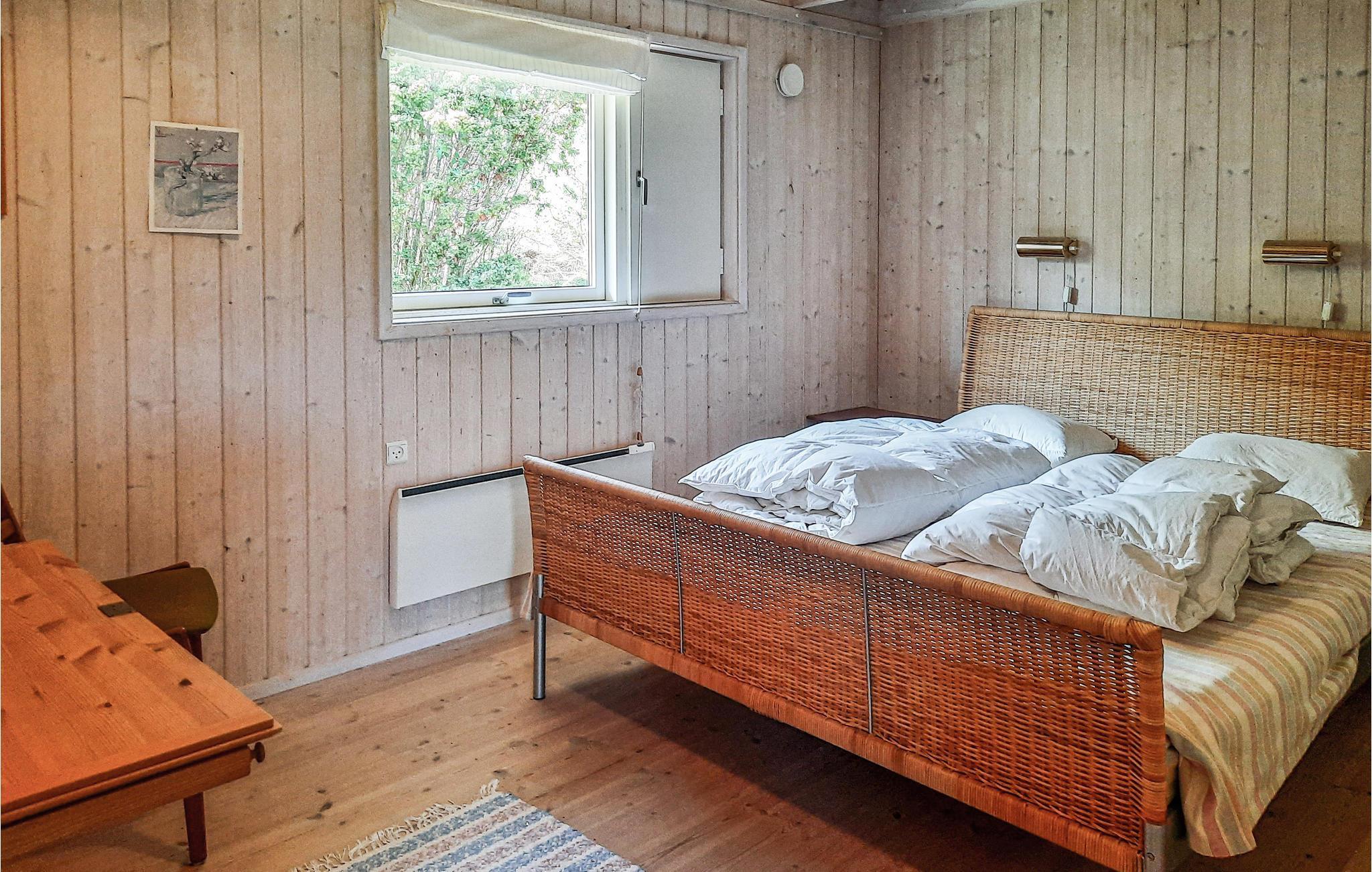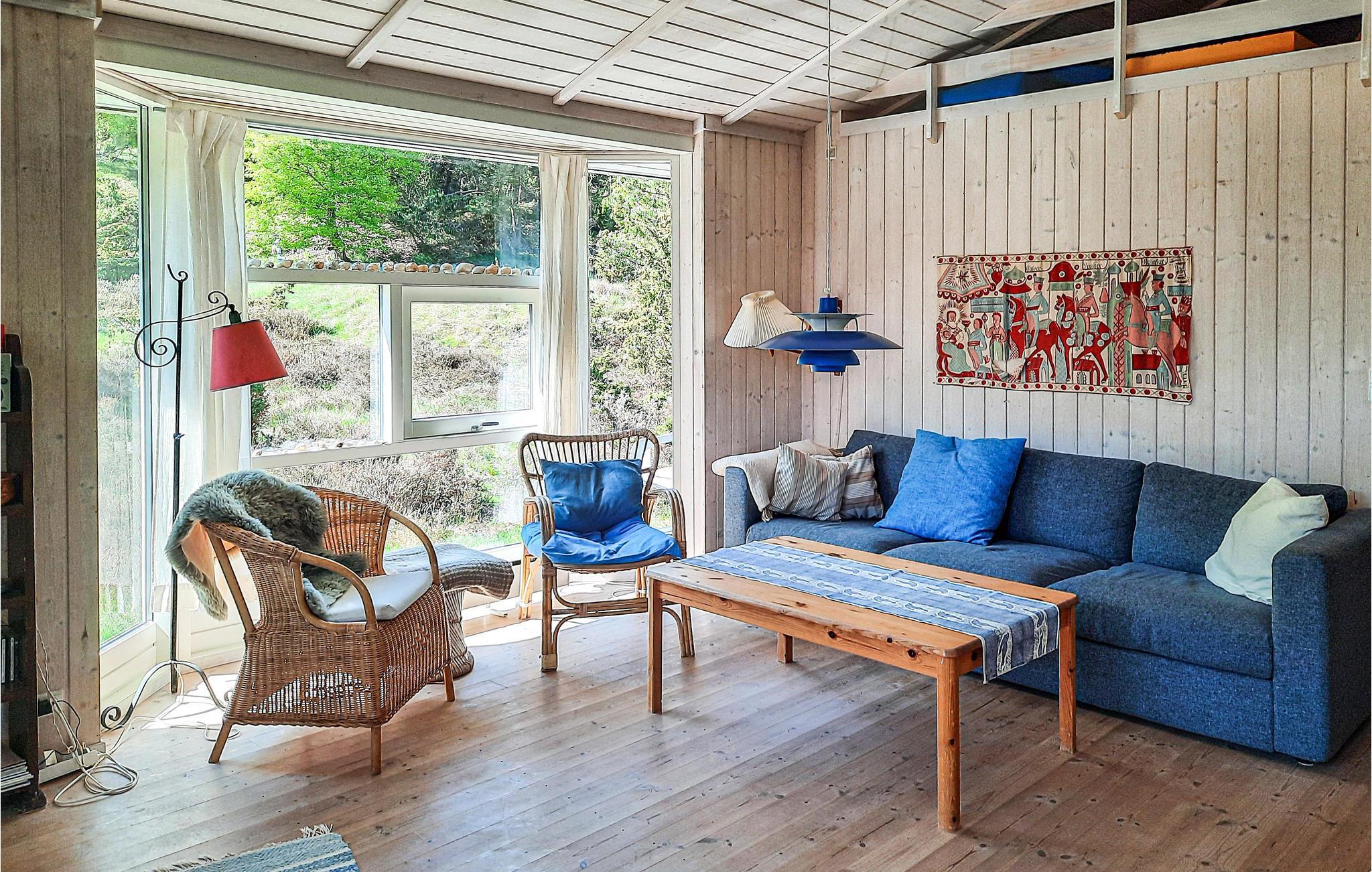 Leder I efter fred og ro og nærhed til stranden? Så skal I overveje en ferie i dette indbydende sommerhus, som kan rumme 4 personer med sine 2 soveværelser. Efter en lang gåtur på stranden, kan I sætte jer god til rette ved pejsen, og gennem de mange vinduer kan I nyde en smuk udsigt over den omkringliggende natur.