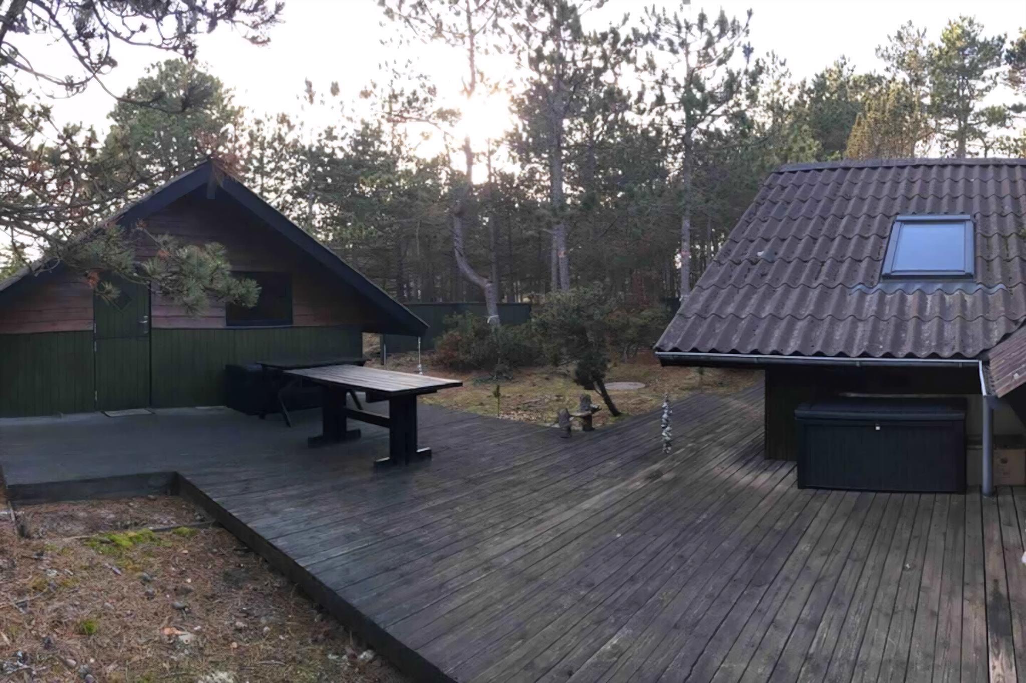 Velkommen til dette charmerende sommerhus beliggende på det fredelige Anholt. Huset ligger med direkte privat sti (30 meter) til det 16 km2 store fredede naturområde "Ørkenen", et skatkammer af natur, hede og skov og en rig variation af planter, fugle og dyr. Sommerhuset er delt i to separate huse, og tilbyder således en unik kombination af fællesskab og privatliv for flere familier eller par. Hovedhusets hjerte er køkken-alrum-stuen, der indbyder til hyggelige stunder og fælles måltider. De moderne faciliteter her sørger for, at madlavningen bliver en leg, f.eks. når menuen står på de populære, lokale jomfruhummere. Der er tilhørende soveværelse med moderne enkeltsenge, en sovesofa i stuen samt badeværelse med brus i hovedhuset. Annekset giver yderligere plads og frihed. Det 20 m2 anneks tilbyder to soveværelser med enkeltsenge og køjesenge samt en hems (maks. 90 kg. Ikke egnet for ældre og gangbesværende). Tag solens stråler til dig på den private 60 m2 træterrasse - Anholt er kendt for sine solskinstimer. Huset er udstyret med havemøbler, terrasseborde, drømmesenge og havelænestole. I solen får man hurtigt lyst til at blunde, og takket været huset placering i et meget fredeligt område bliver du næppe forstyrret. Eller tag en tur til Anholts rene, hvide strande med masser af plads. Disse strande tiltrækker sol- og vandelskere langvejs fra. Eller oplev vandreture i ”Ørkenen”, et 16 km2 stort fredet naturområde uden beboelse eller byggeri. Her venter et særligt landskab, hvor du kan gå på opdagelse og eventyr i en uberørt natur - en vildmark i Danmark. Anholt er en skattekiste af oplevelser. Kun 600 meter fra din dør ligger Anholt Kro, et lokalt spisested, der lokker med øens kulinariske specialiteter (sæson). Du behøver sjældent bilen her; lej en cykel og lad øens rolige veje føre dig gennem unik natur og til skjulte strande. Her venter et ferieparadis for alle aldre, hvor hver dag byder på nye eventyr eller rolig afslapning i Danmarks måske mest særegne natur. Obs, udlejes ikke til erhversmæssigt brug.