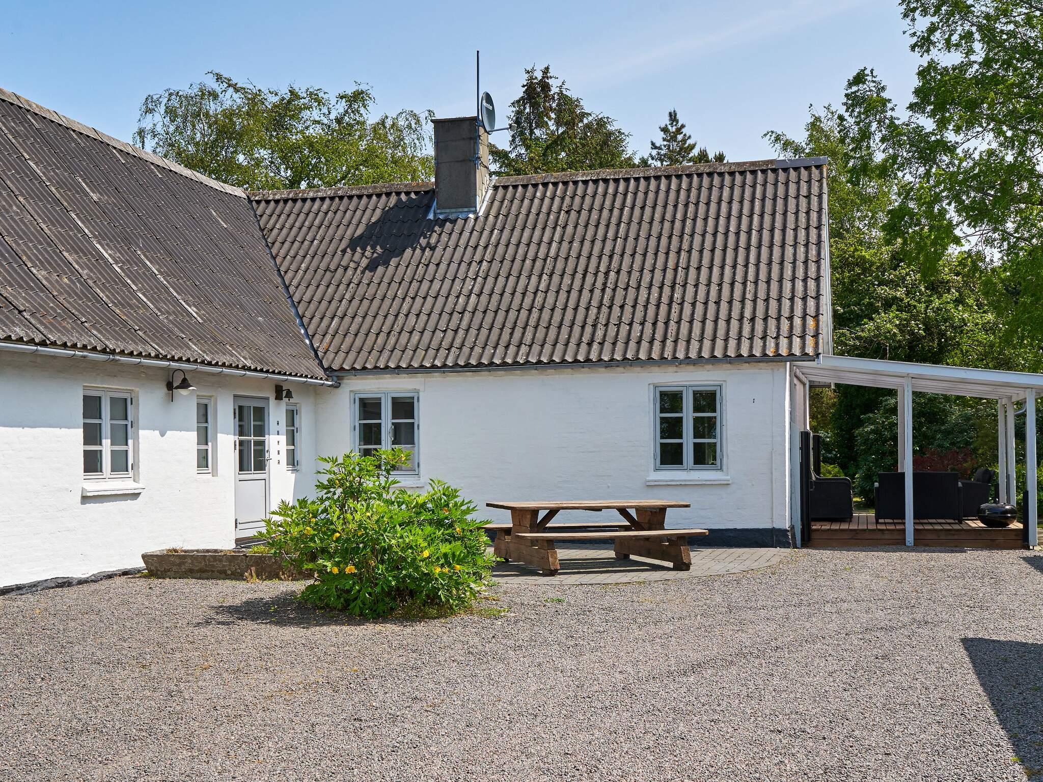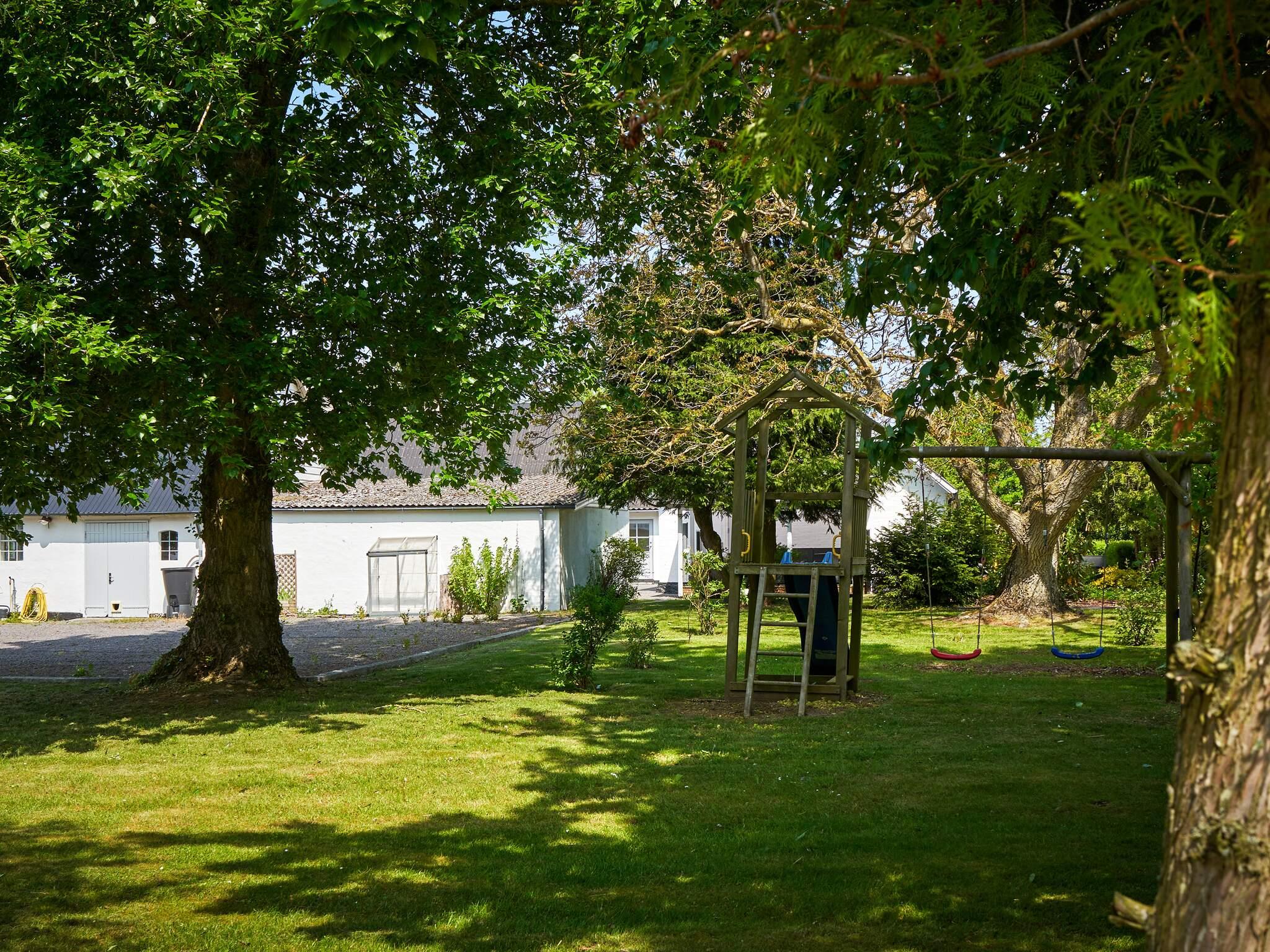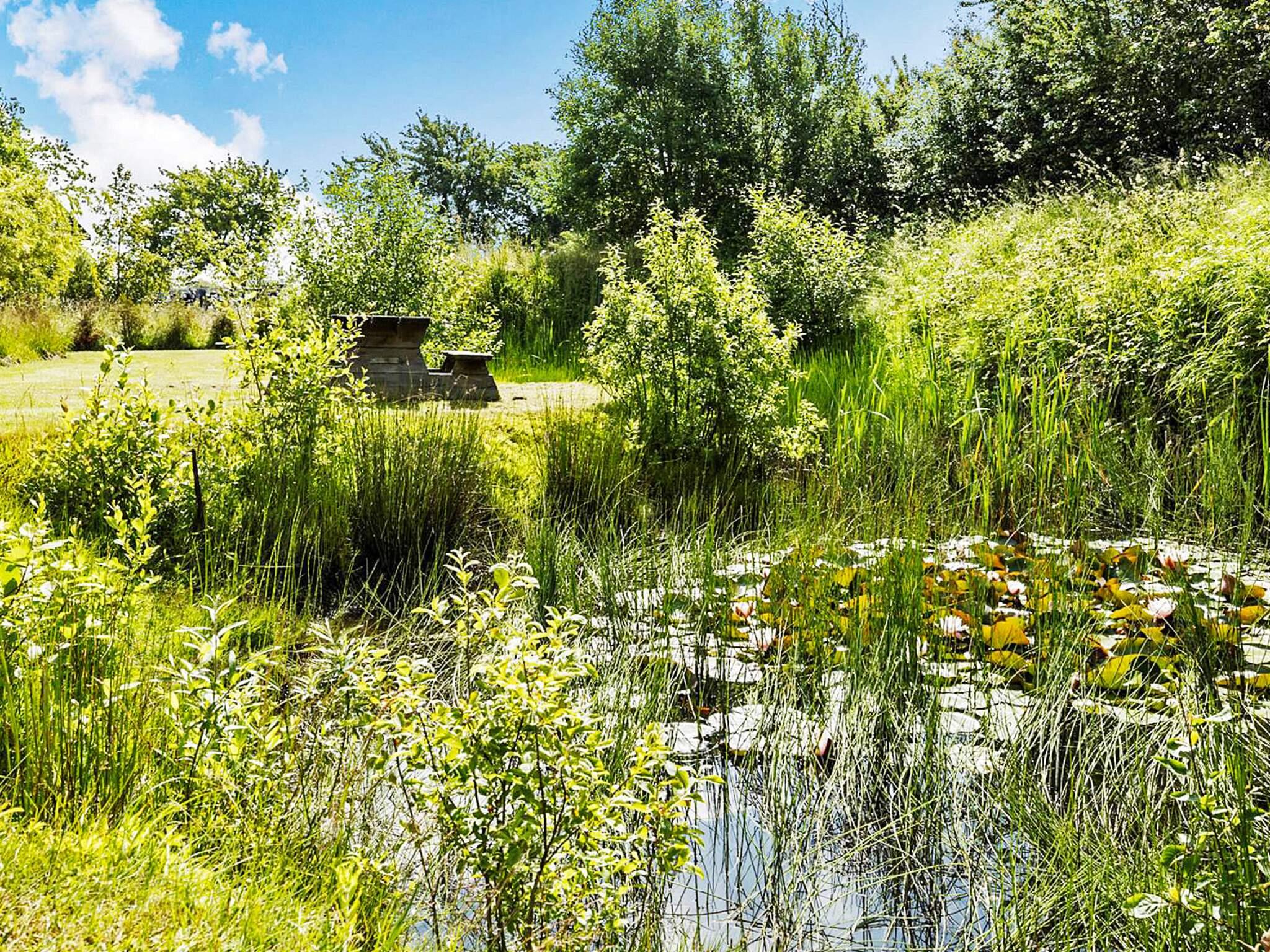 Huset ligger op til landevejen mellem Rønne og Åkirkeby, men I kan ikke høre trafikstøj inde i huset. Husets have er en stor parklignende have i flere afdelinger. Nederst i haven finder I jeres egen lille sø, hvor det er tilladt at prøve at fange en fisk.