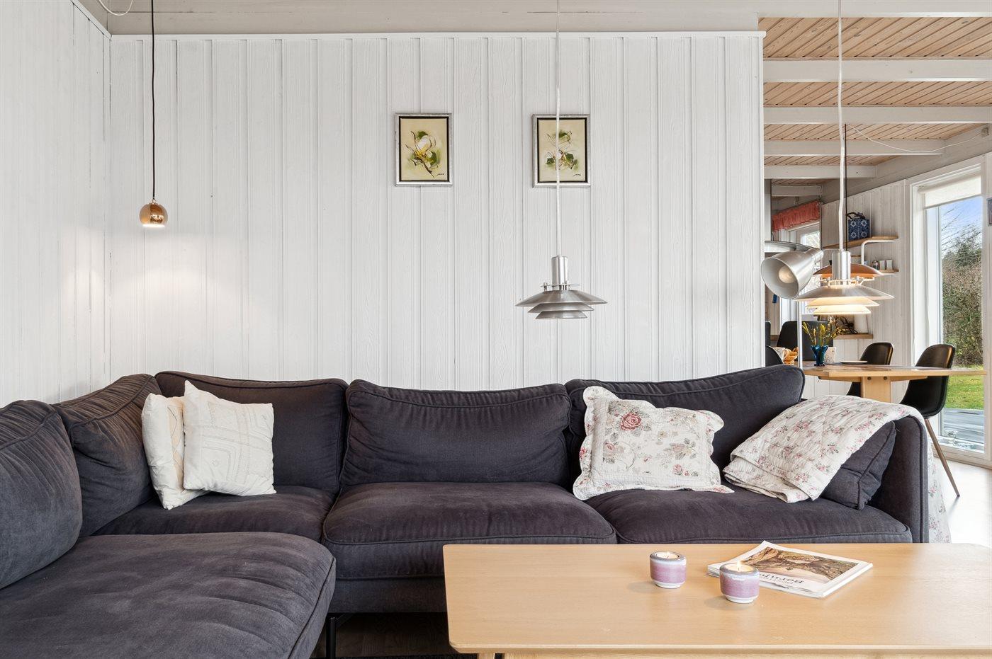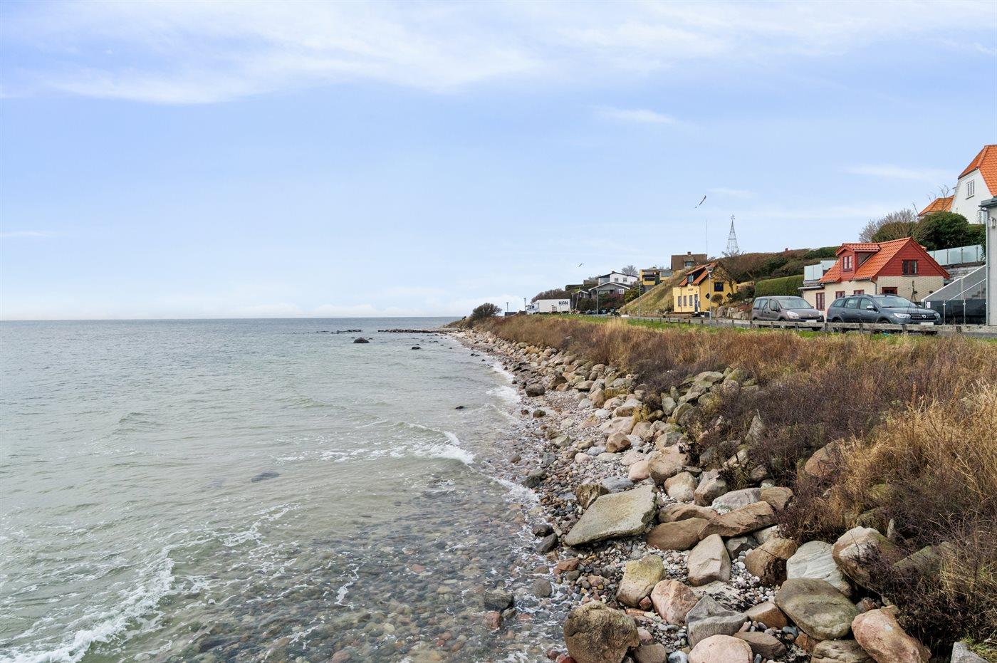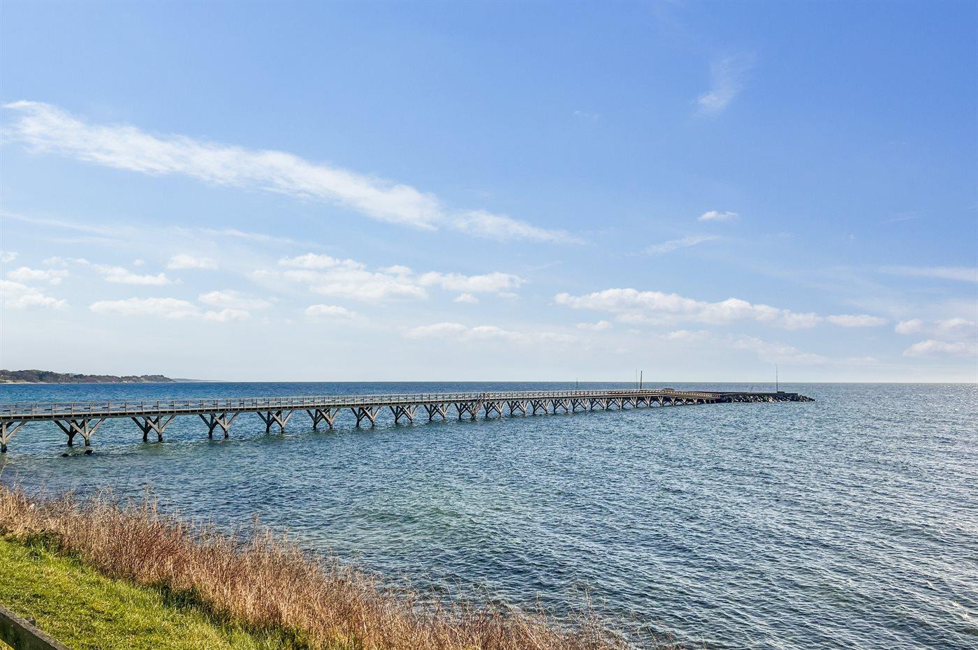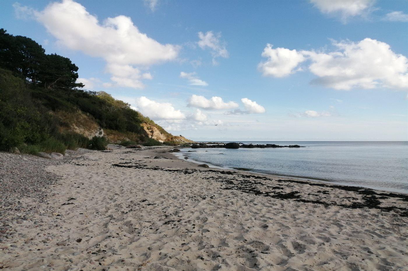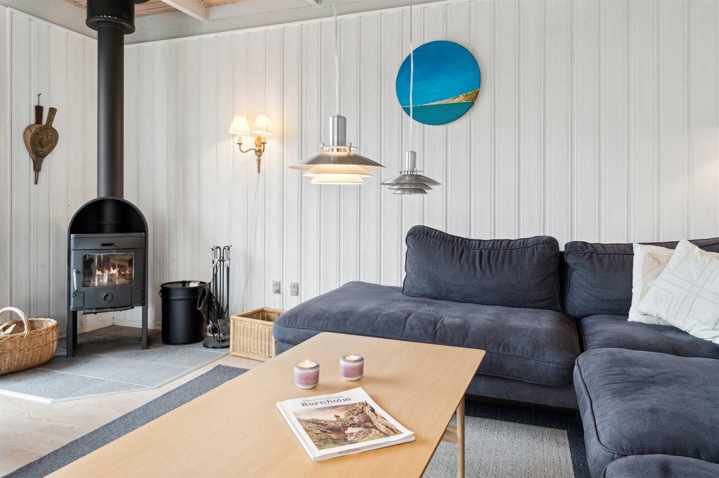 Dette skønne sommerhus kendetegnes af sin lyse og venlige indretning og ligger i det gamle fiskerleje Arnager i et sommerhusområde ud til sandstrand, klintekyster og den fabelagtige ø-havn. Her findes en af Skandinaviens længste broer, som fører ud til den lille havn, hvor der er aktivitet og liv omkring den nyetablerede sauna.