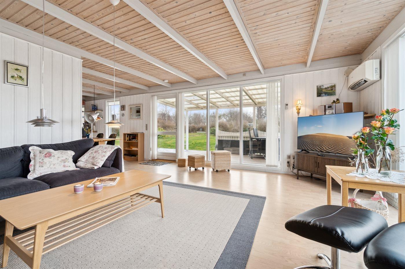 Husets ydervægge er beklædt med træværk, så huset har en helt speciel karakter. Der findes åben og fin, overdækket terrasse, der indbyder til timer i det fri, hvor du kan nyde solen, en god bog er eller udsigten til de nære omgivelser.