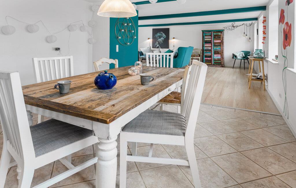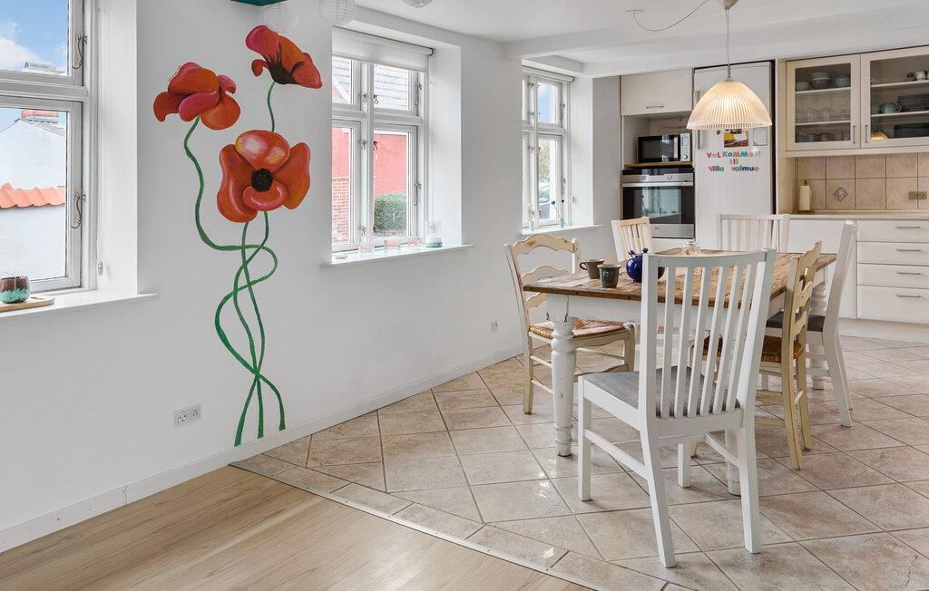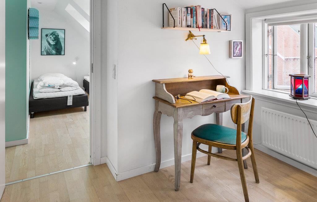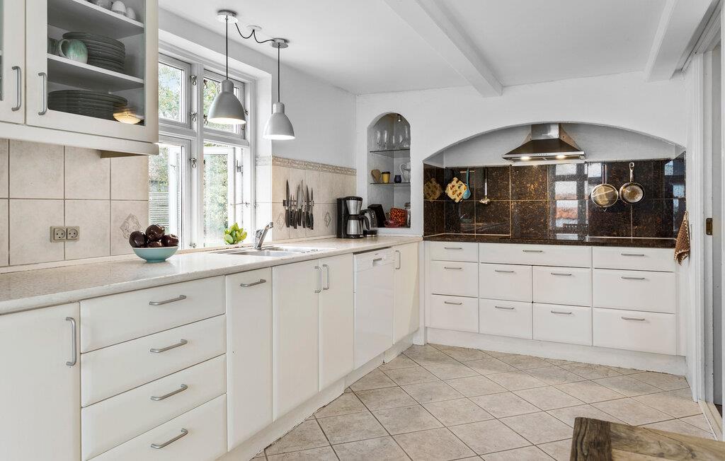 Nyd jeres ophold i dette charmerende feriehus i Arnager, der imponerer med sin indbydende atmosfære og kærligt indrettede interiør. Start dagen med morgenmad i det lyse spiseområde, hvor det rustikke træbord lægger op til hyggelige måltider. Det rummelige og veludstyrede køkken gør madlavningen til en fornøjelse. Tilbered jeres livretter her og nyd den hyggelige stemning. Stuen med sin farverige og stilfulde indretning giver et særligt præg. Læn jer tilbage på sofaen eller i gyngestolen, slap af med en film, eller fordyb jer i en god bog.
