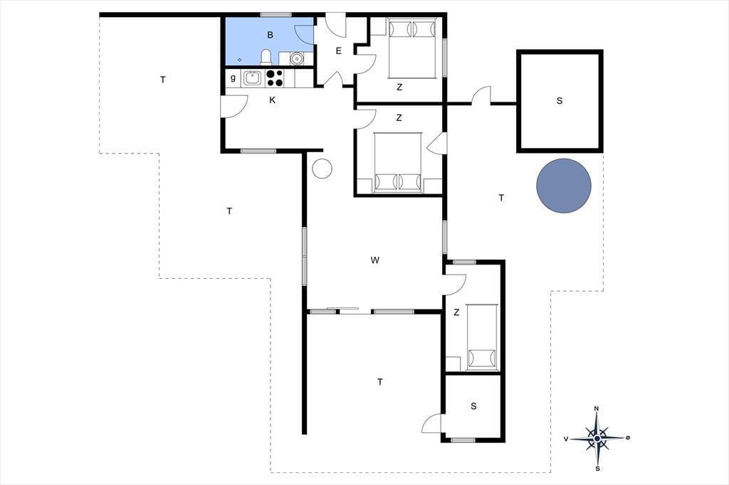 Med blandt andet en fiskesø, svømmehal og minigolf er der meget at hygge sig med i feriebyen, men det er nu også tillokkende bare at blive hjemme i sommerhuset for at nyde dagene i helt roligt tempo. Huset er blevet renoveret i 2023, og resultatet er særdeles vellykket, så du kan slappe af i velindrettede og hyggelige omgivelser. Spisekøkkenet og stuen ligger i åben forbindelse, og centralt i opholdsafdelingen står en brændeovn – den får du måske gavn af, hvis temperaturen falder om aftenen, og du har planer om at slænge dig på sofaen med en spændende bog eller en film på fladskærms-tv’et.