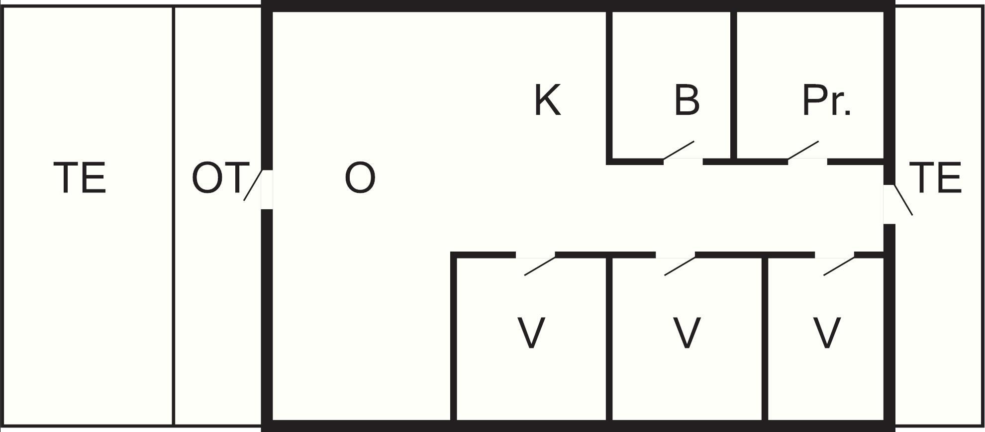 Der er 3 soveværelser, som alle er placeret med adgang fra sommerhusets entre, så det er muligt for børn at trække sig tilbage fra fællesrummet for at slappe af. Det er også fra gangen adgang til et mindre badeværelse med bruseniche.