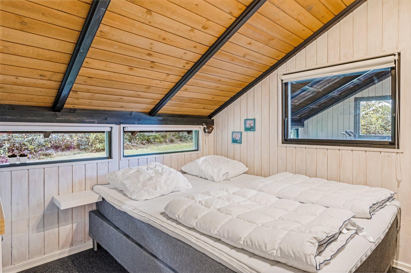 Der er i alt 2 soveværelser. Sovepladserne fordeler sig på: 4 sovepladser i dobbeltsenge. 1 soveplads i enkeltseng. 2 sovepladser i sovesofa (enkelt). 2 af disse sovepladser befinder sig i stuen.