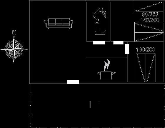 Køkkenet er udstyret med 1 køleskab. Der er 4 induktionskogeplader, varmluftovn.