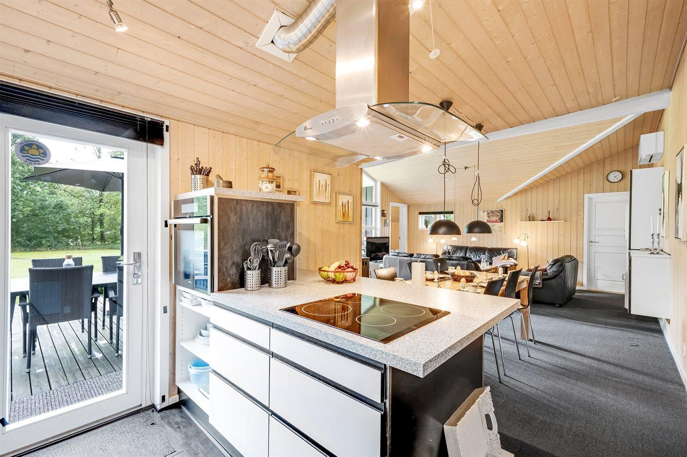 Køkkenet er udstyret med 1 køleskab. Der er 4 keramiske kogeplader, varmluftovn, mikrobølgeovn samt opvaskemaskine.