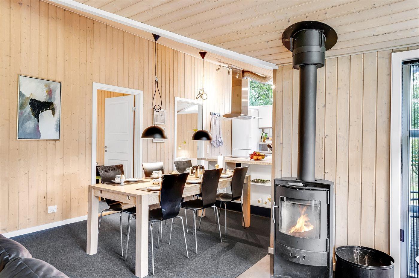 Sommerhuset egner sig til 8 personer samt 1 barn op til 3 år. Ferieboligen er på 120 m² og er bygget i 2005. Det er tilladt at medbringe 1 husdyr. Ferieboligen er udstyret med energibesparende varmepumpe. Ferieboligen har vaskemaskine. Tørretumbler. Frysekapacitet på 80 liter. Der er desuden brændeovn. Til de små er der 1 stk. barnestol.