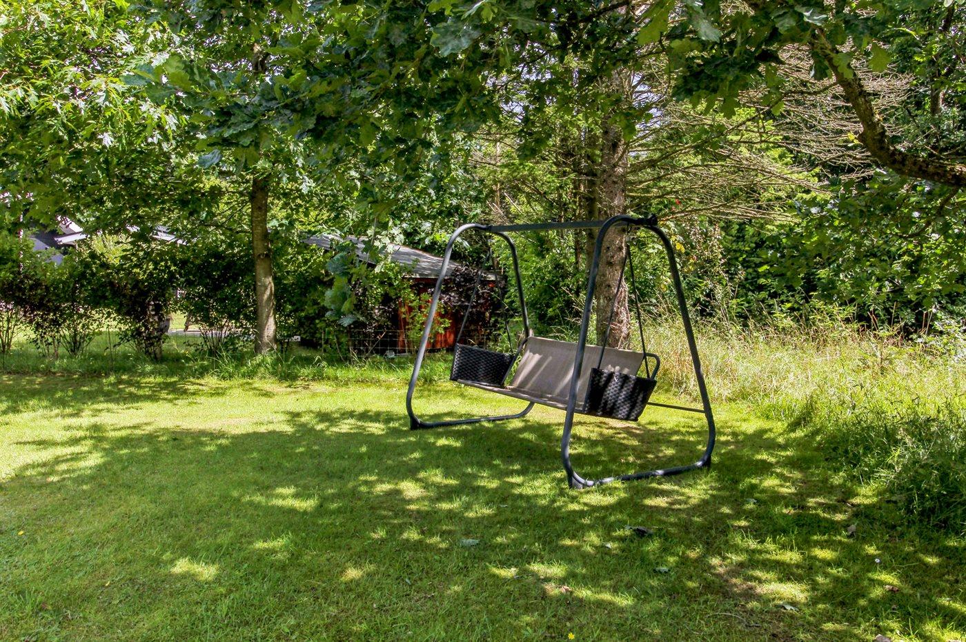 Dejligt sommerhus i Arrild Ferieby med spa, sauna, energibesparende varmepumpe og plads til leg på stor naturgrund.