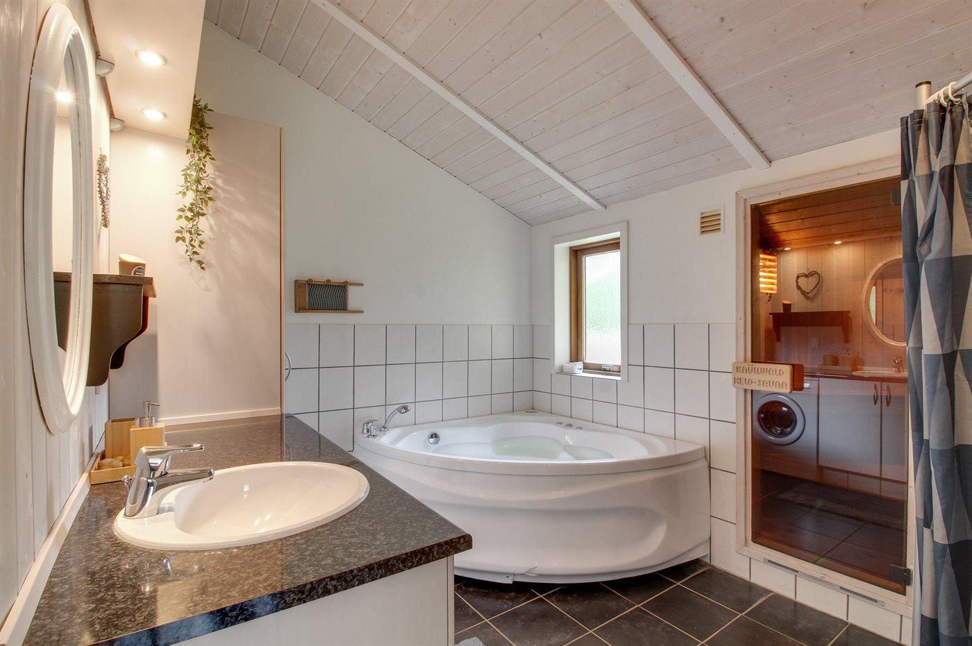 Der er 1 badeværelse med bruseniche og 1 toilet.. Der er gulvvarme på 1 badeværelse. I saunaen er der mulighed for afslapning.