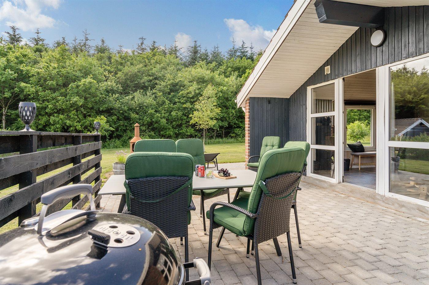 Ferieboligen er beliggende på en 850 m² stor naturgrund. Der er 31000 m til havet. Der er 18000 m til Vadehavet. Nærmeste forretning er beliggende i en afstand af 400 m. Der er en golfbane i en afstand af 1000 m. Til ferieboligen hører 50 m² terrasseareal. Der findes et fuldt isoleret opbevaringsrum, som man tilgår via en overdækket passage. Der er 2 grill til rådighed. Parkering ved ferieboligen.