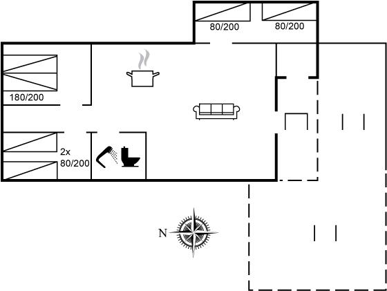 Der er i alt 3 soveværelser. Sovepladserne fordeler sig på: 2 sovepladser i dobbeltseng. 4 sovepladser i enkeltsenge.
