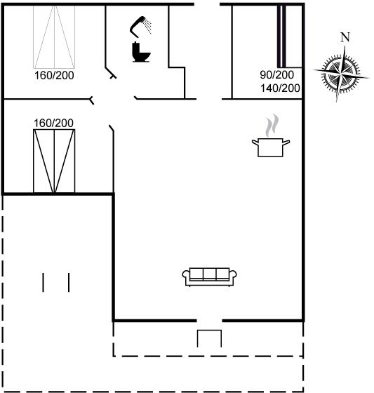 Der er i alt 3 soveværelser. Sovepladserne fordeler sig på: 4 sovepladser i dobbeltsenge. 3 sovepladser i køjesenge.