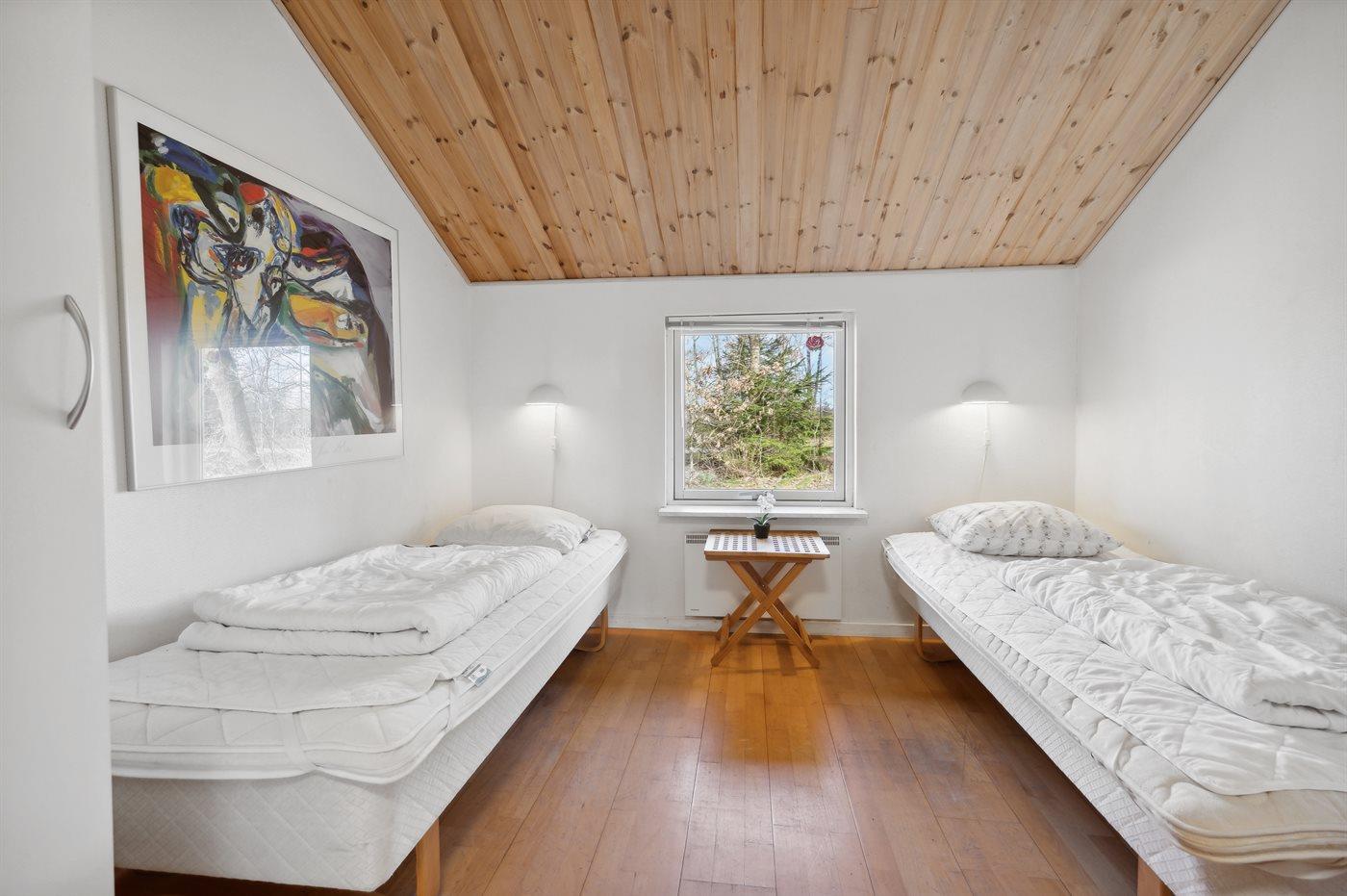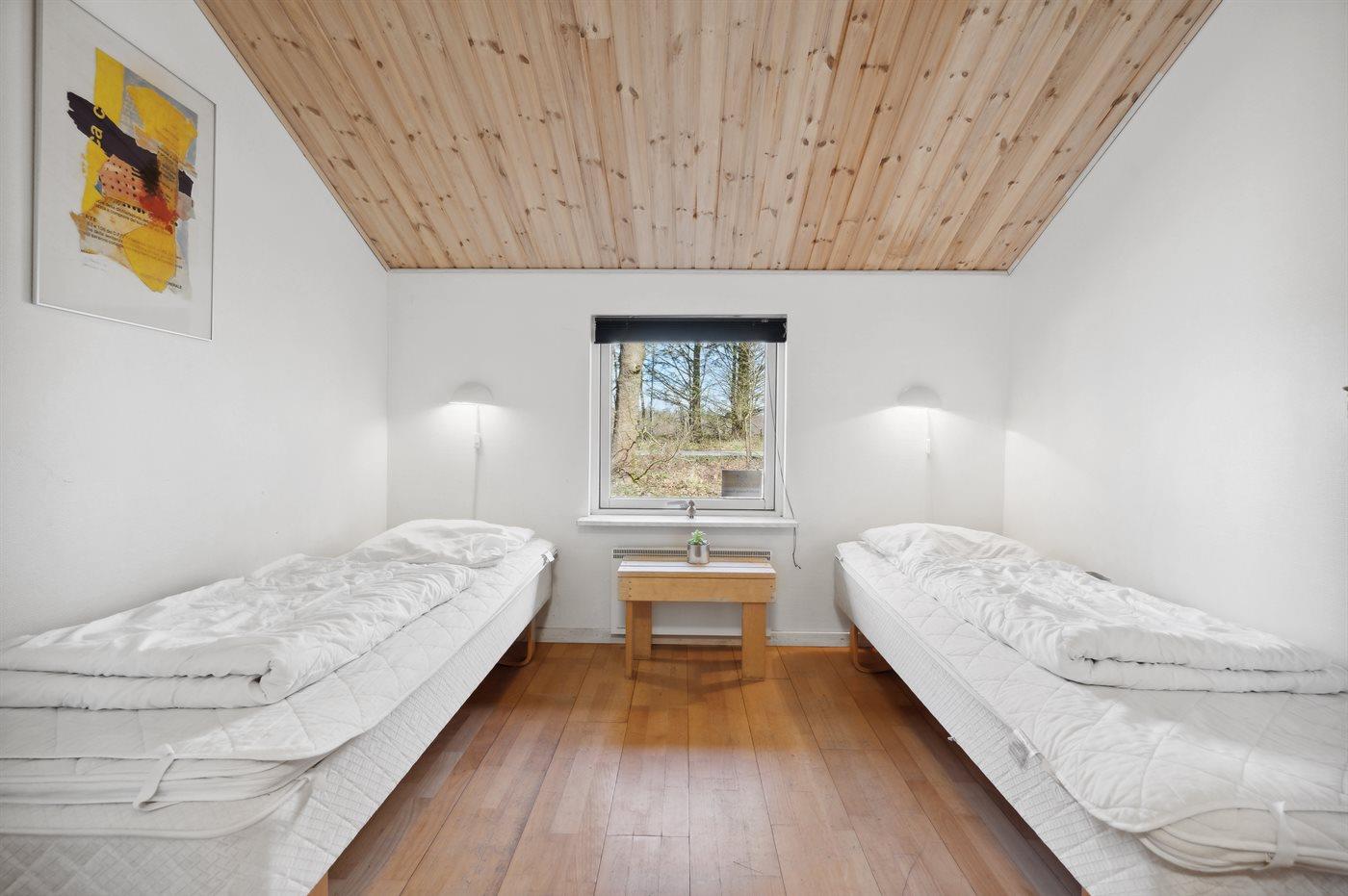 Der er i alt 4 soveværelser. Sovepladserne fordeler sig på: 4 sovepladser i dobbeltsenge. 4 sovepladser i enkeltsenge.