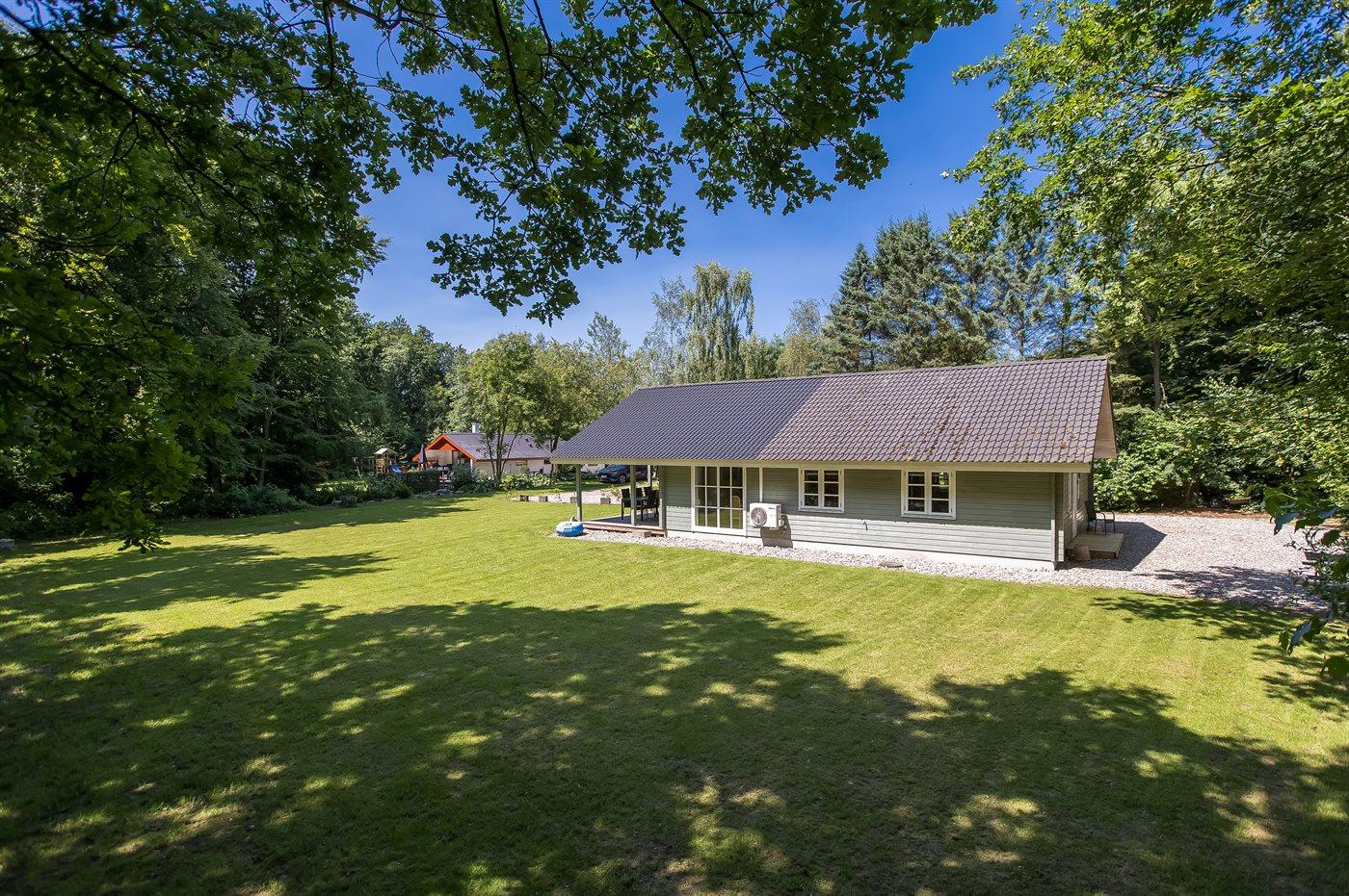 Dette dejlige sommerhus ligger på en ugenert grund i et naturskønt område. Til huset hører en skøn, overdækket terrasse.