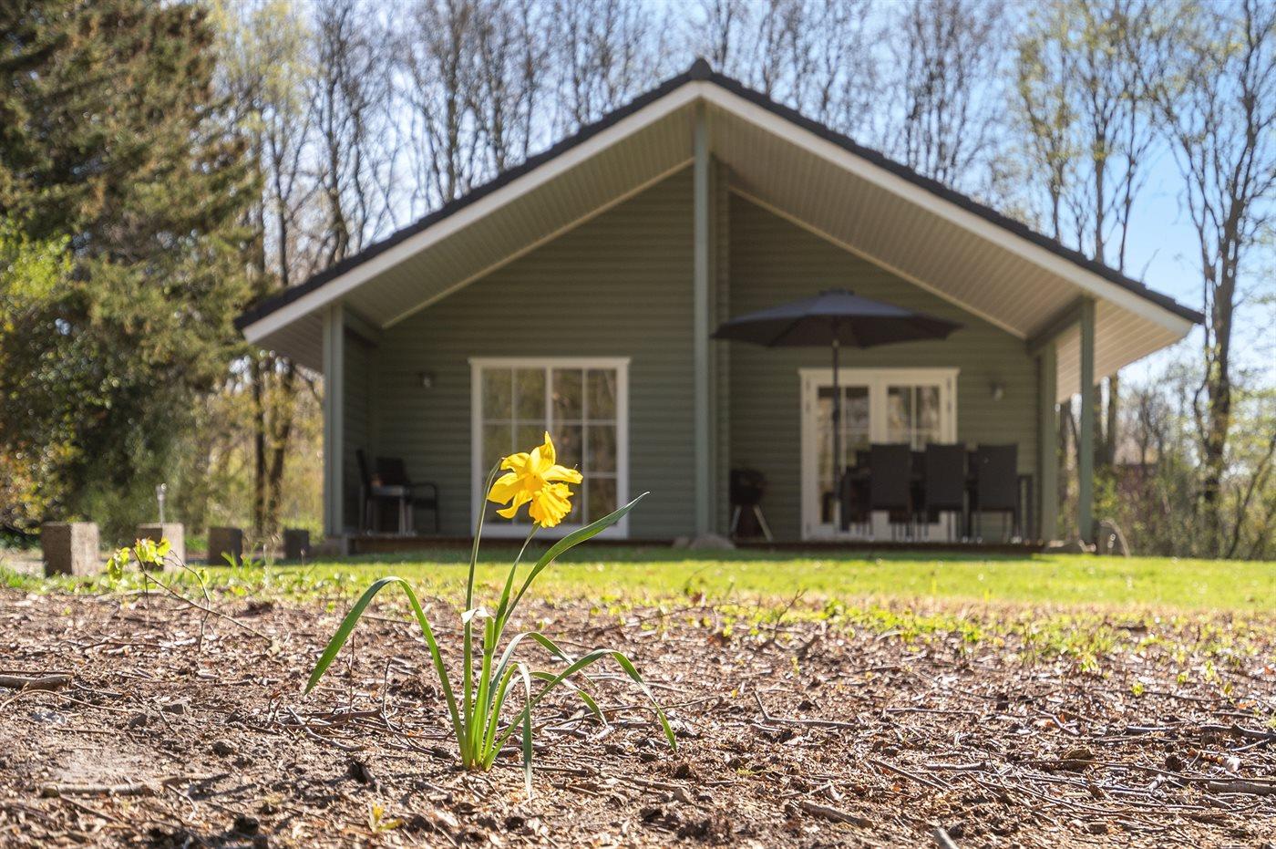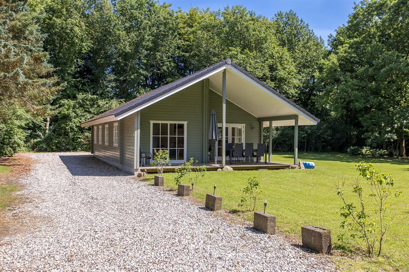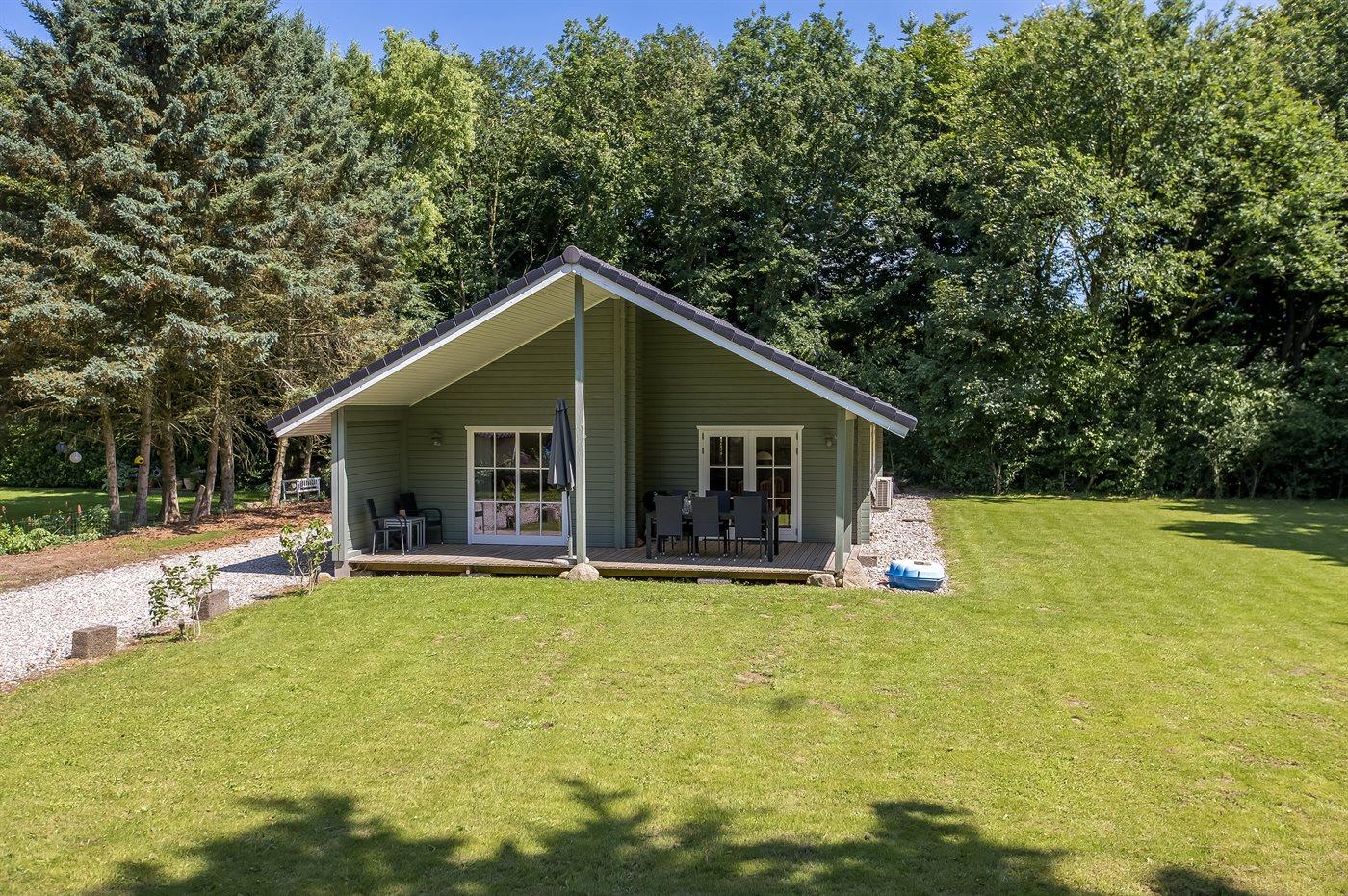 Hyggeligt sommerhus i naturskønt område med spa og overdækket terrasse til afslapning.