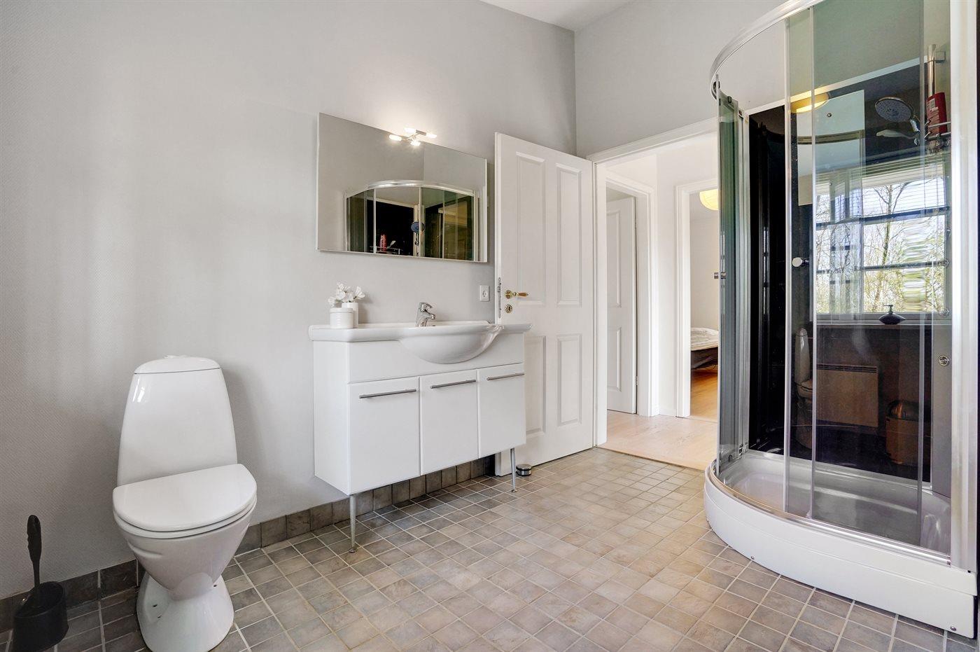 Der er 1 badeværelse med bruseniche og 1 toilet.. Der er gulvvarme på 1 badeværelse.