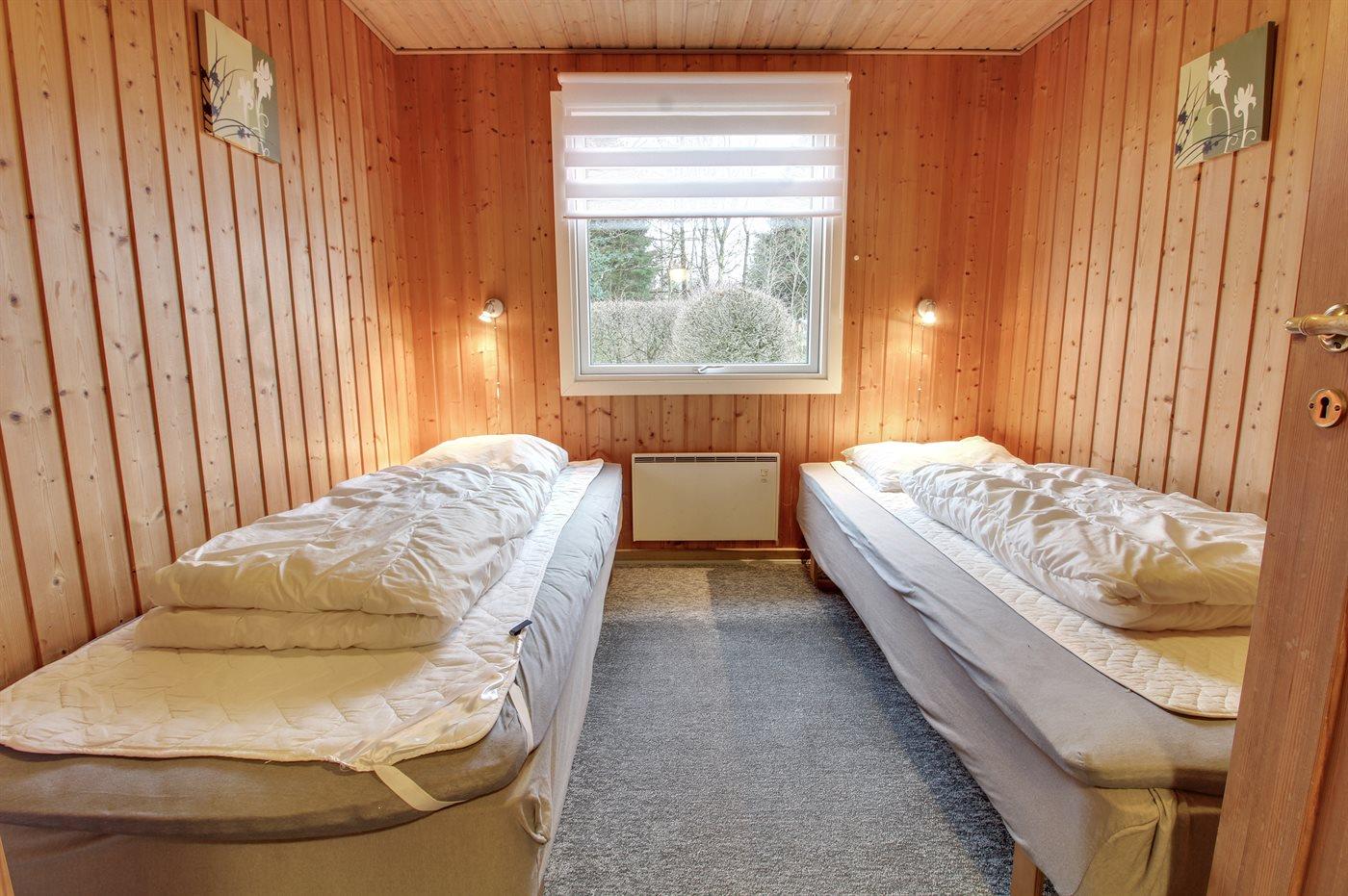 Der er i alt 3 soveværelser. Sovepladserne fordeler sig på: 4 sovepladser i dobbeltsenge. 2 sovepladser i enkeltsenge.