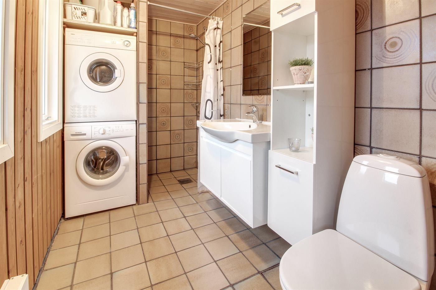 Der er 1 badeværelse med bruser og 1 toilet.. Der er gulvvarme på 1 badeværelse.