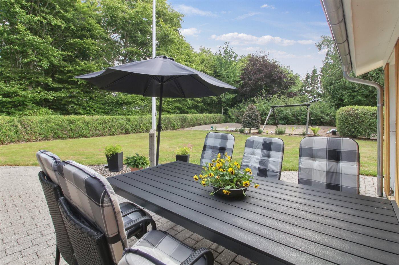 Rummeligt sommerhus i rolige omgivelser med stor terrasse og naturgrund nær Arrild.