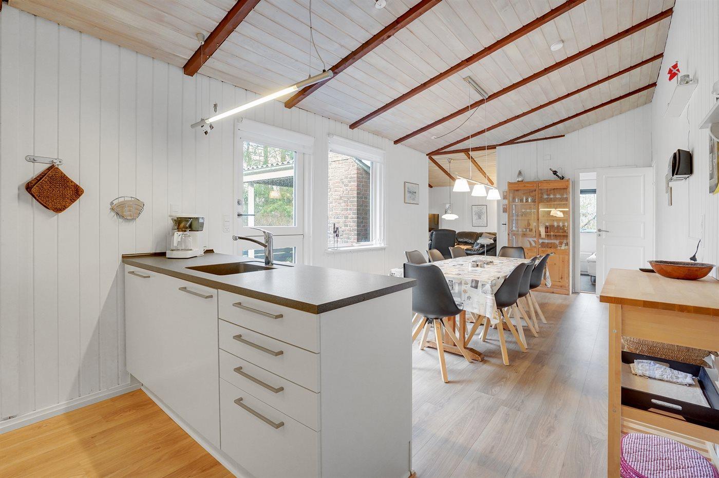 Køkkenet er udstyret med 1 køleskab. Der er 4 keramiske kogeplader, varmluftovn, mikrobølgeovn samt opvaskemaskine.