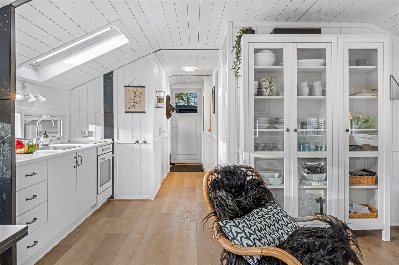 Et hyggeligt indrettet og nymoderniseret sommerhus beliggende for enden af en blind vej. Her findes der små hyggekroge således man altid kan finde et sted, hvorfra man kan nyde udsigten til naturen. Huset er praktisk indrettet og har en hyggelig atmosfære.