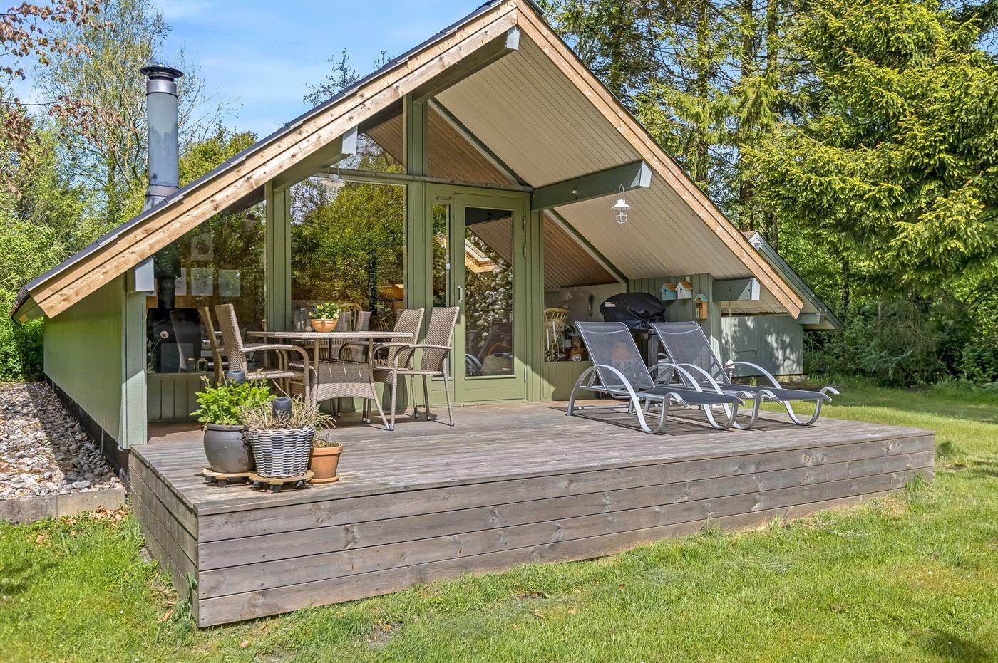 Skønt, lille sommerhus beliggende i et roligt område på en dejlig grund omkranset af høje træer.