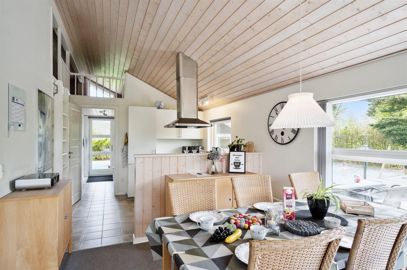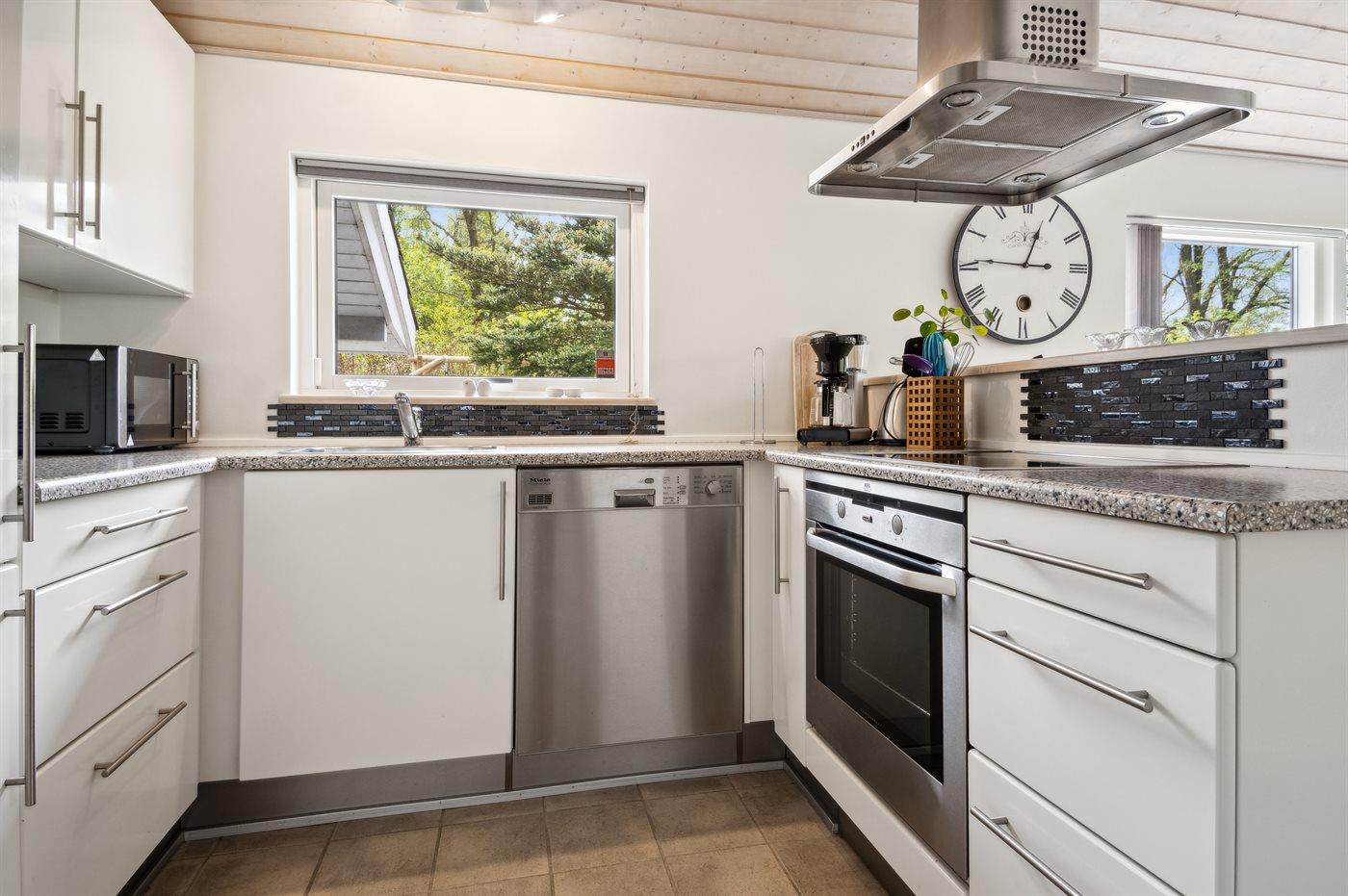 Køkkenet er udstyret med 1 køleskab. Der er 4 elkogeplader, varmluftovn, mikrobølgeovn samt opvaskemaskine.