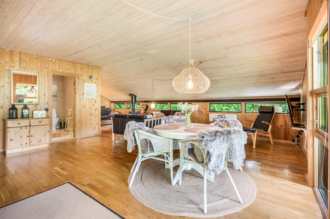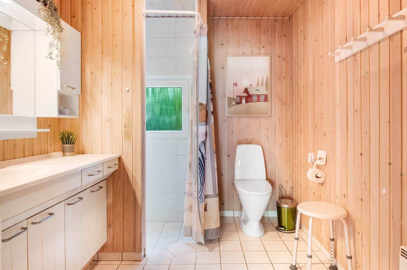 Der er 1 badeværelse med bruseniche og 1 toilet. I saunaen er der mulighed for afslapning.