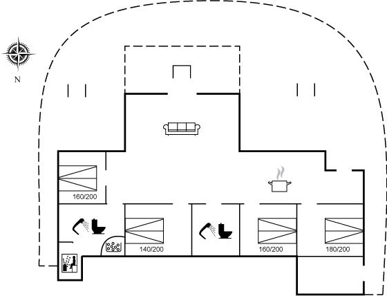 Der er i alt 4 soveværelser. Sovepladserne fordeler sig på: 8 sovepladser i dobbeltsenge. Derudover er der 1 stk. barneseng.