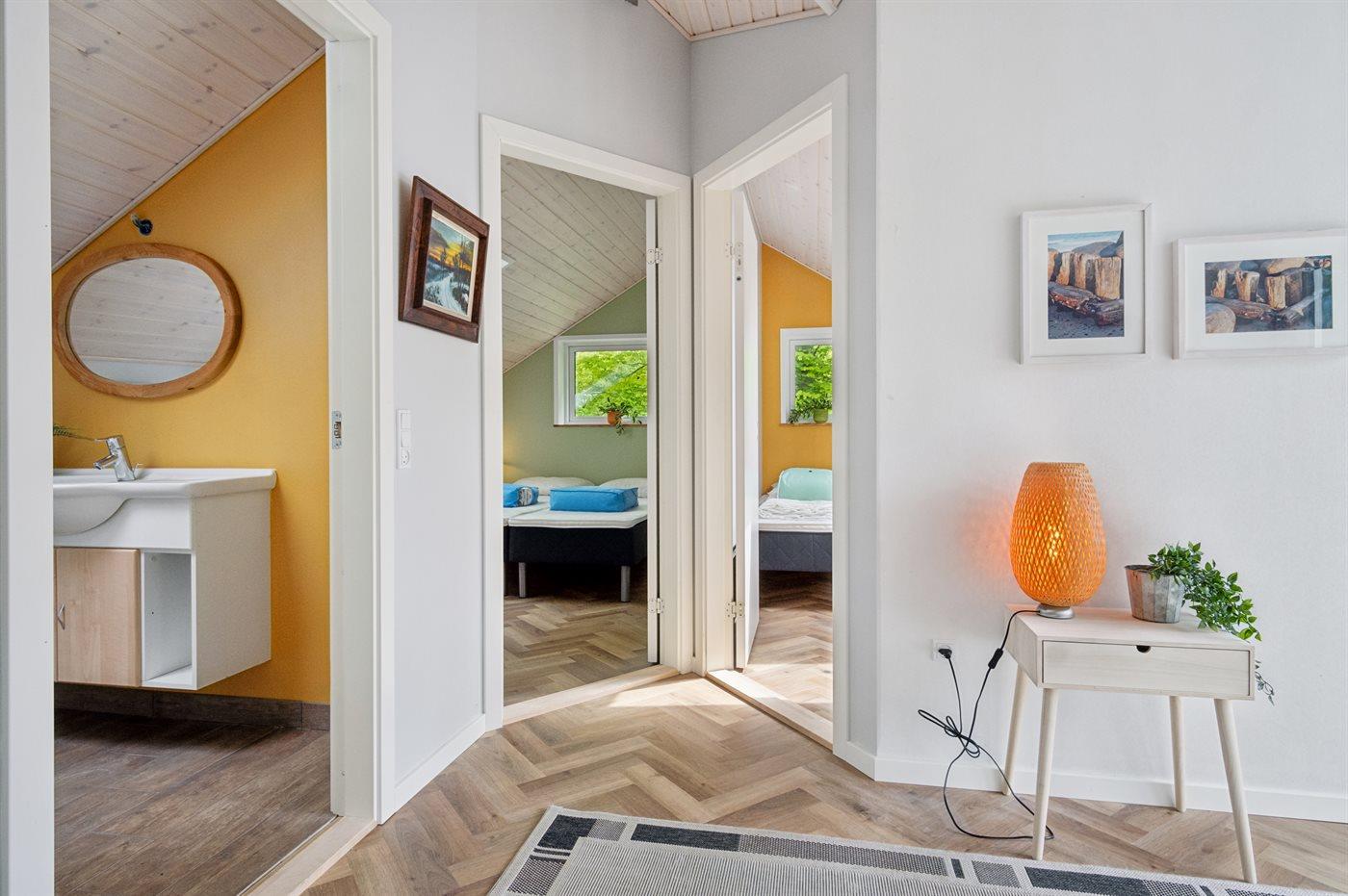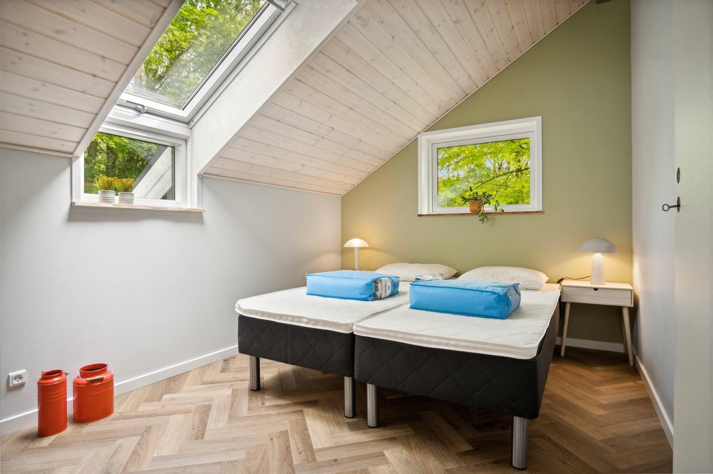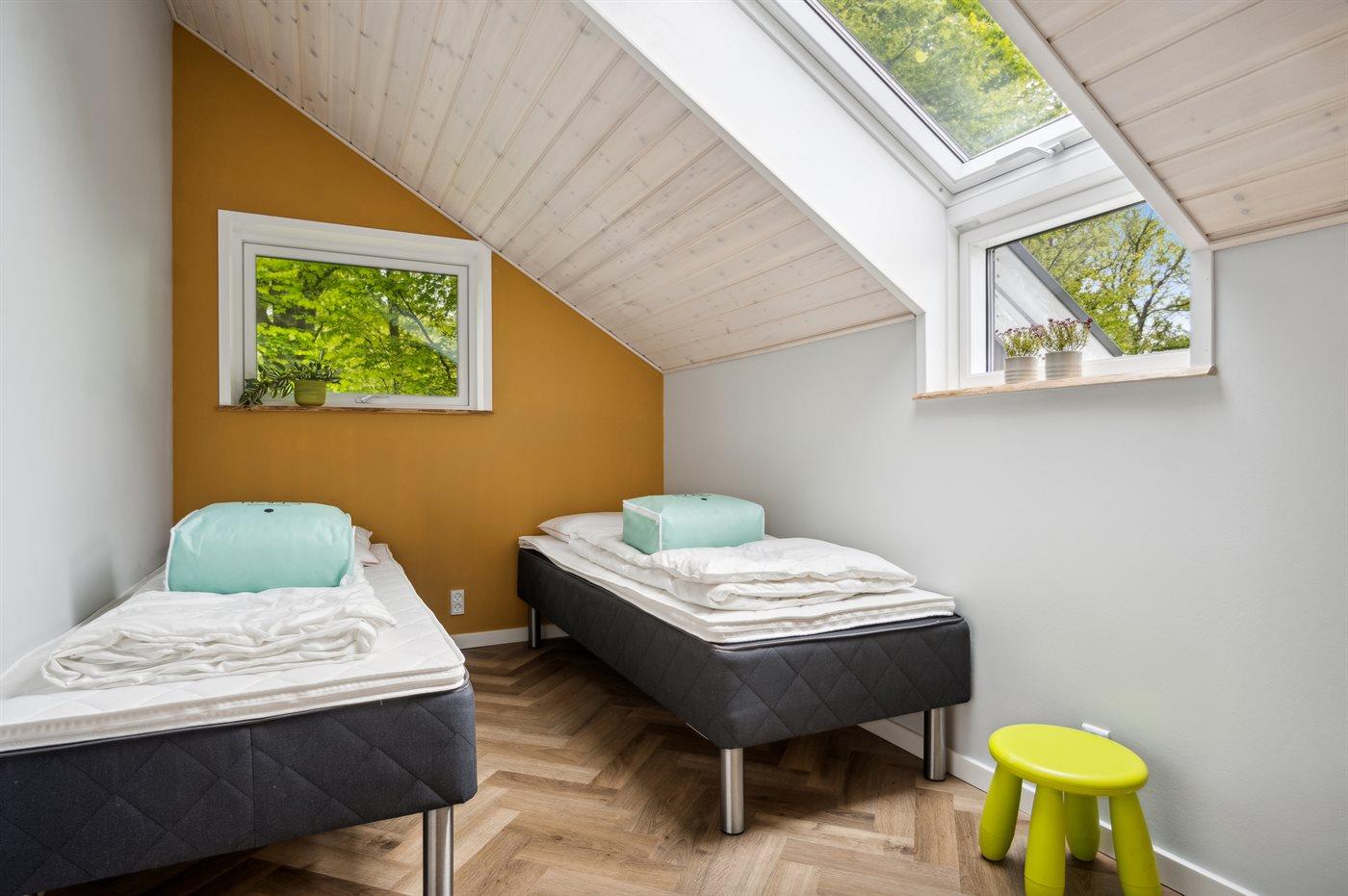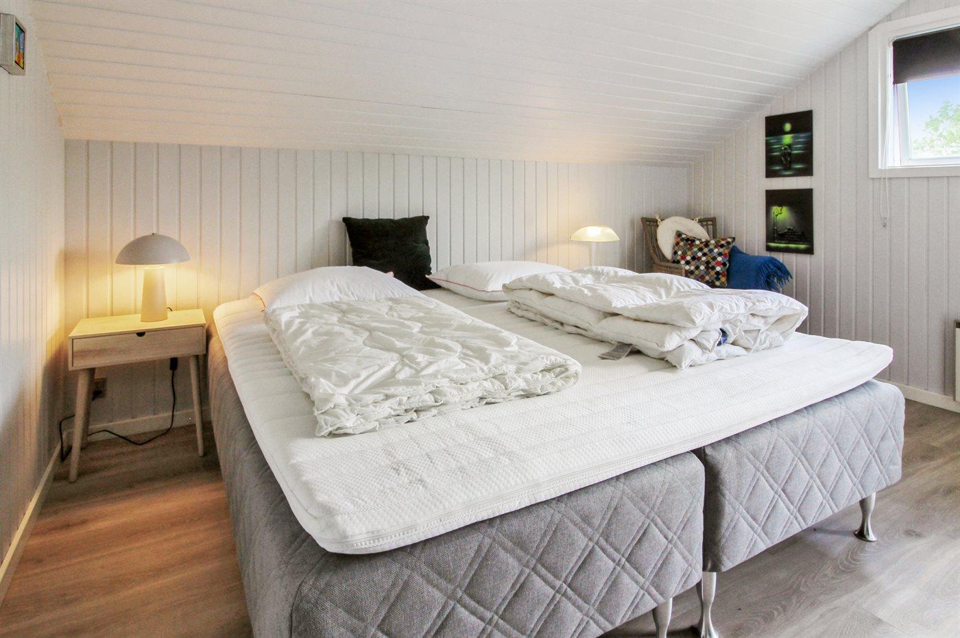 Der er i alt 3 soveværelser. Sovepladserne fordeler sig på: 4 sovepladser i dobbeltsenge. 2 sovepladser i enkeltsenge. 2 af disse sovepladser befinder sig i anneks. Derudover er der 1 stk. barneseng.