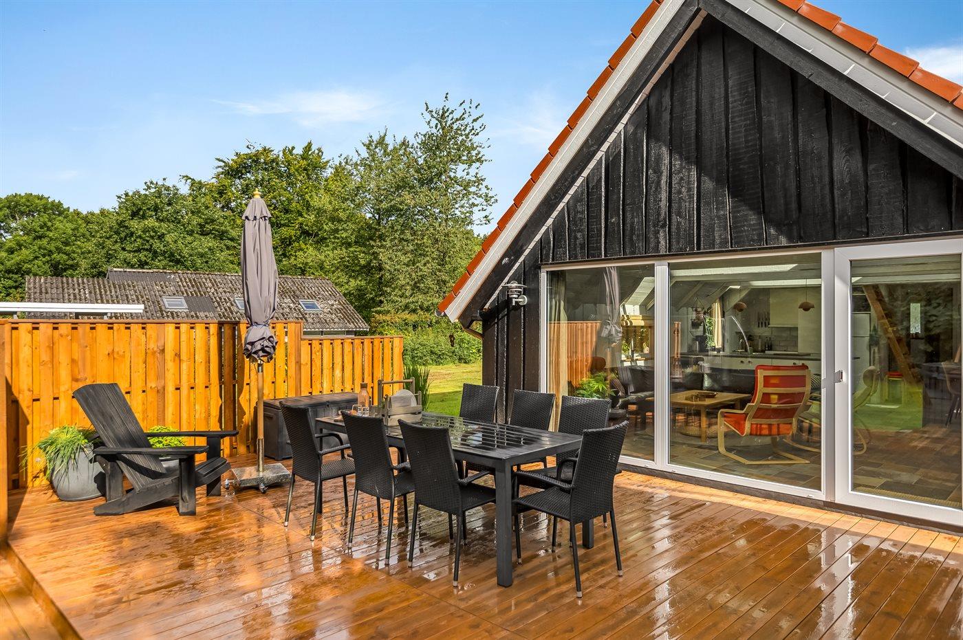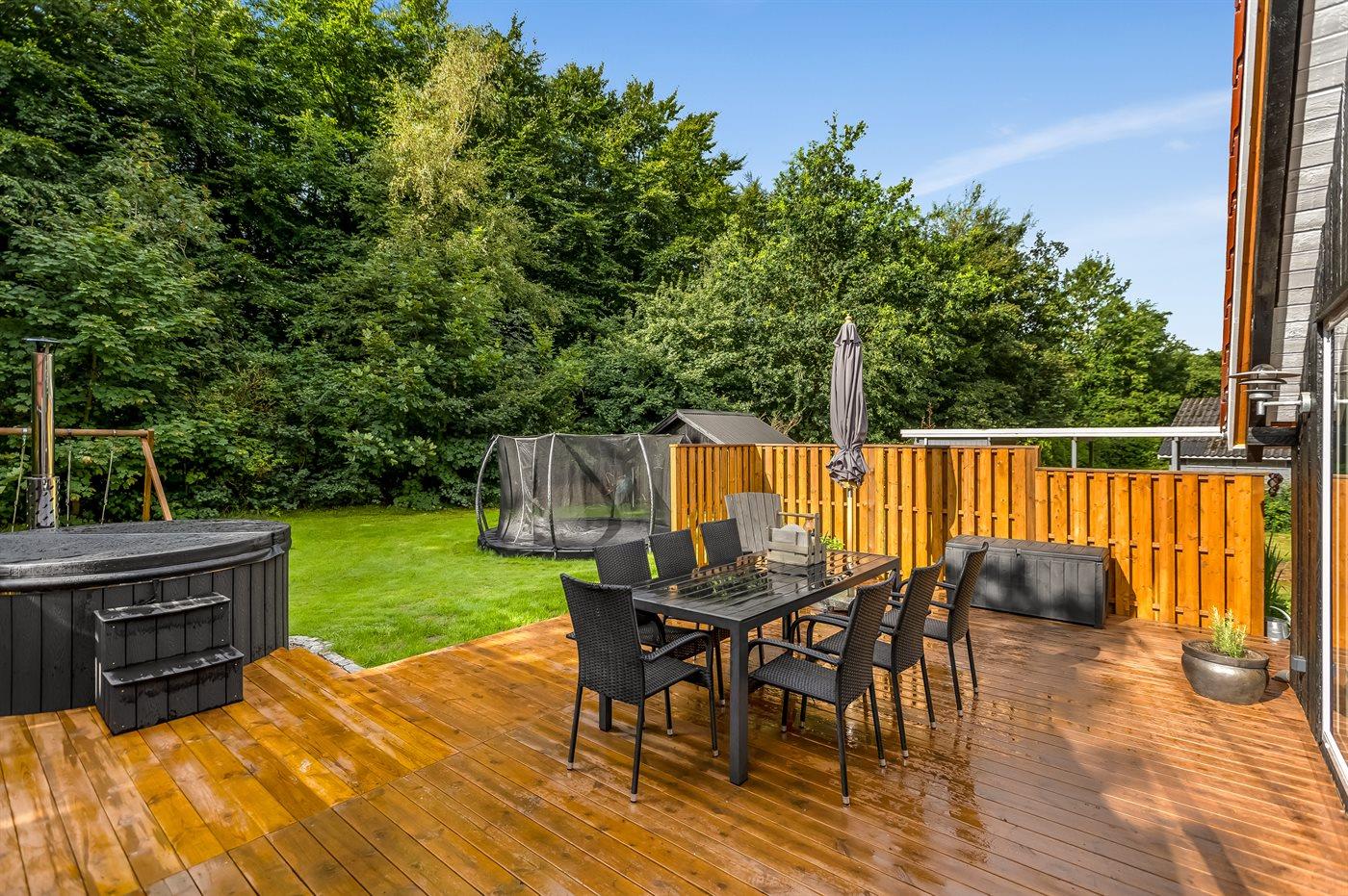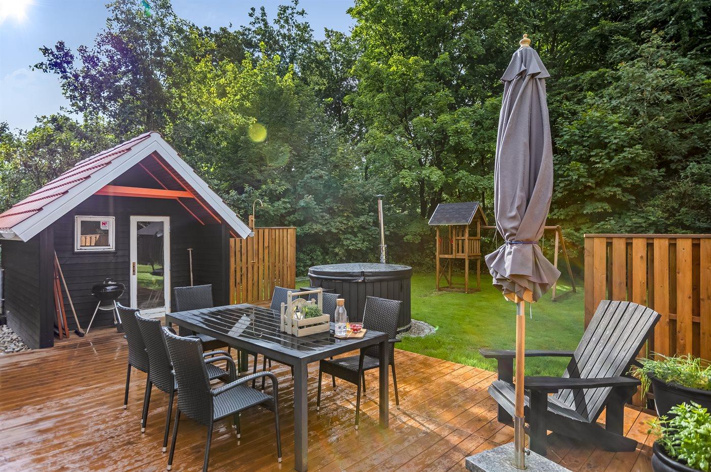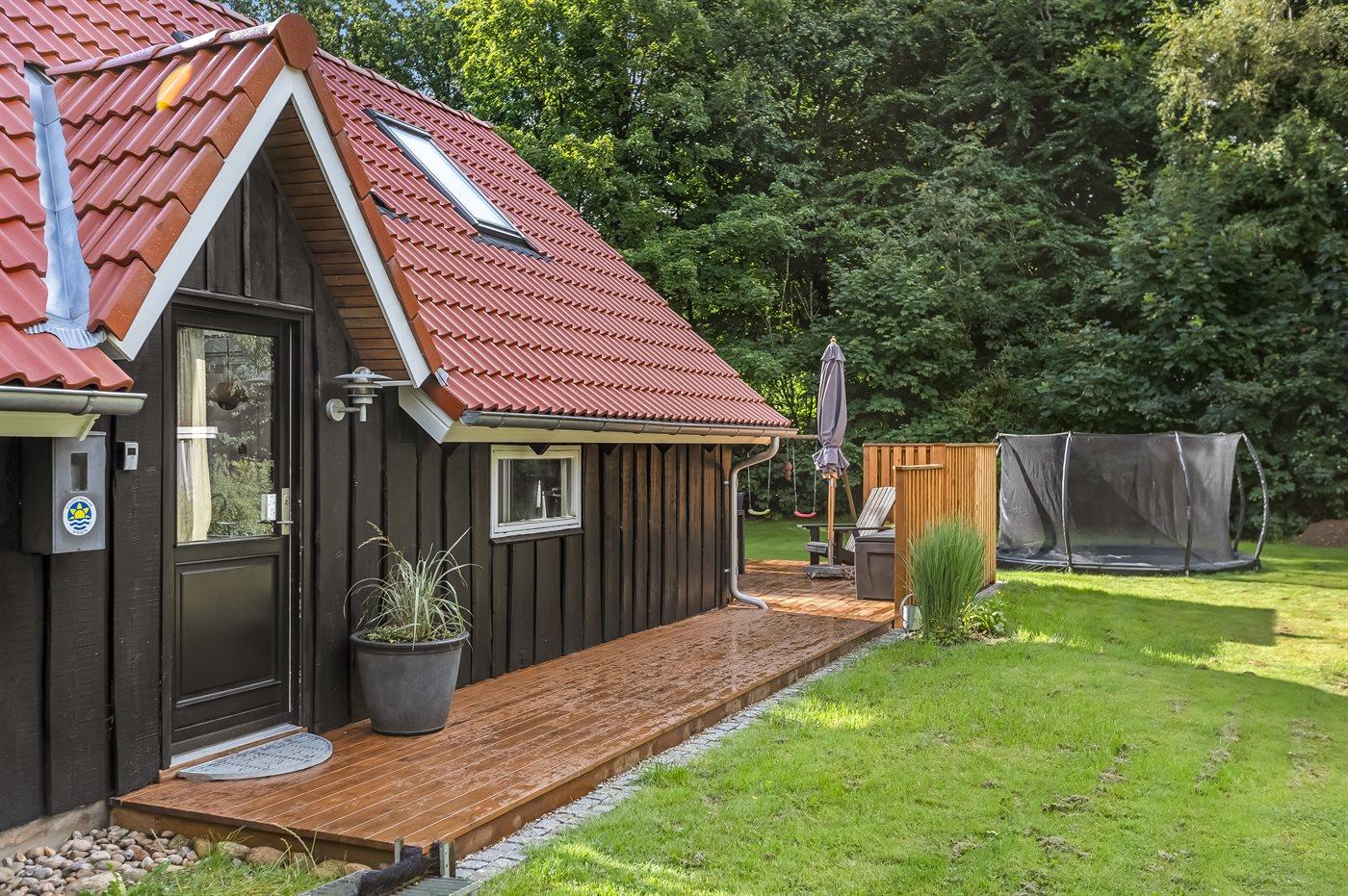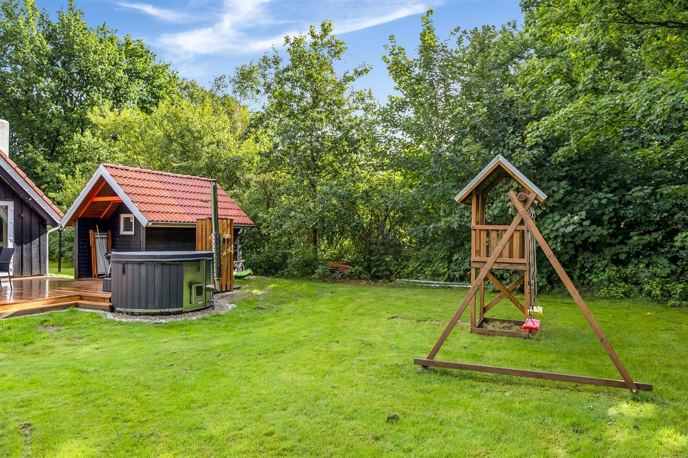 Hyggeligt sommerhus i Arrild med terrasse, sauna og vildmarkskar, perfekt til afslapning og leg på naturgrund.