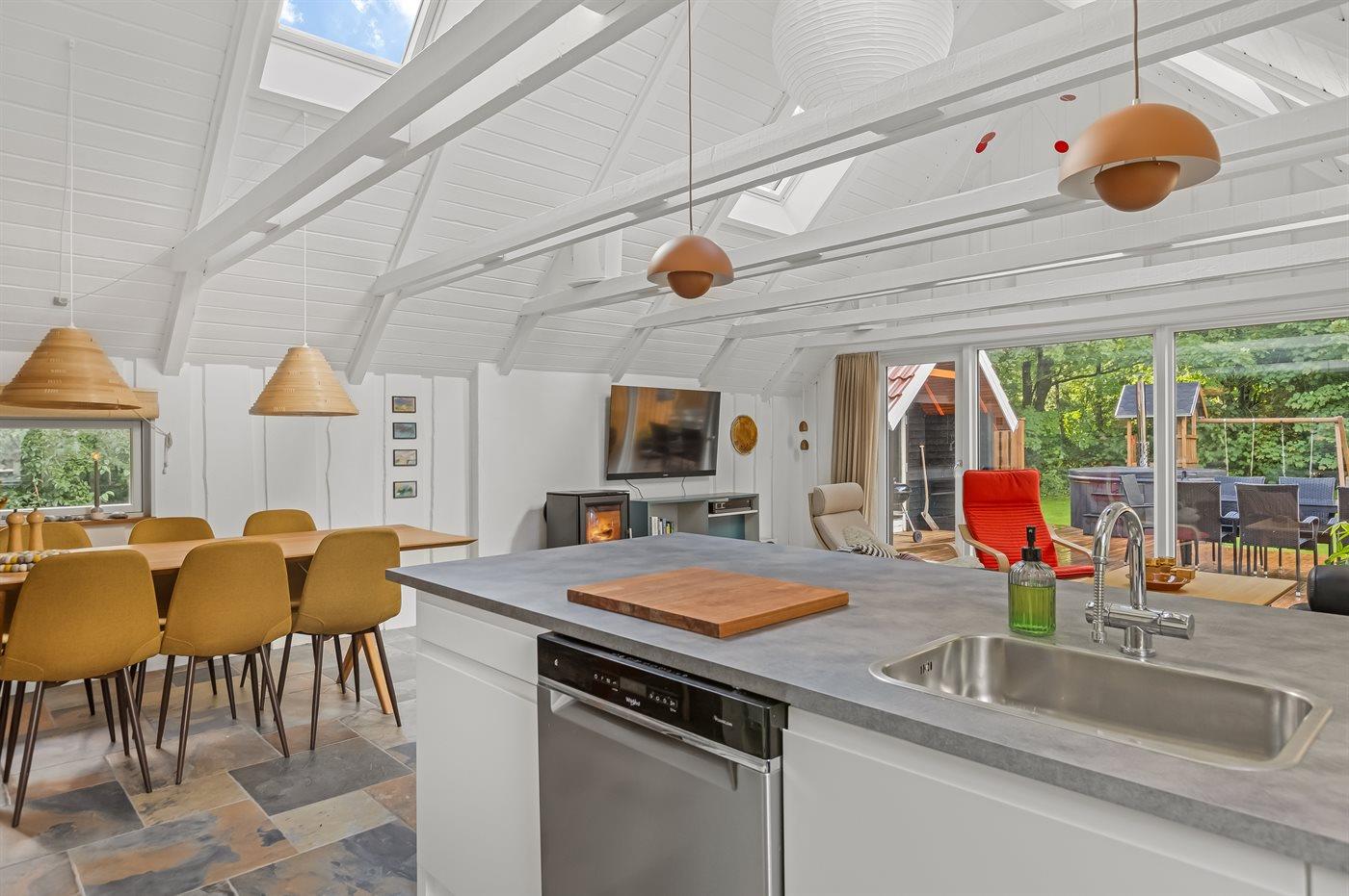 Køkkenet er udstyret med 1 køleskab. Der er 4 keramiske kogeplader, varmluftovn, mikrobølgeovn samt opvaskemaskine.