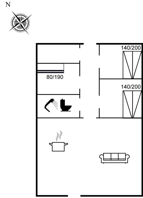 Der er i alt 3 soveværelser. Sovepladserne fordeler sig på: 4 sovepladser i dobbeltsenge. 2 sovepladser i køjeseng. Derudover er der 1 stk. barneseng.