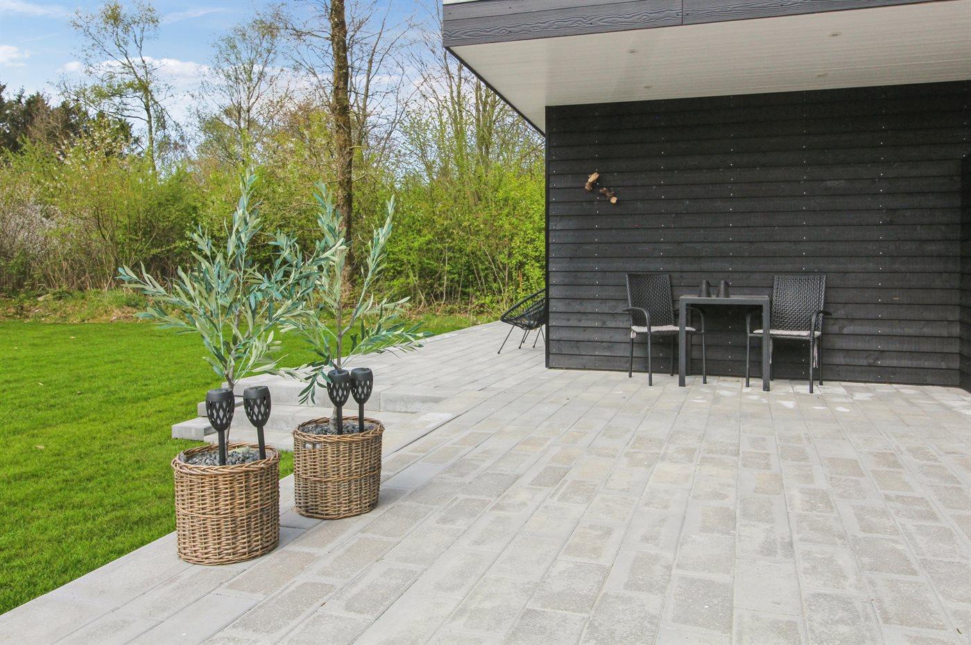 Ferieboligen er beliggende på en 874 m² stor naturgrund. Der er 30000 m til havet. Der er 20000 m til Vadehavet. Der er en sø i en afstand af 500 m. Nærmeste forretning er beliggende i en afstand af 1100 m. Der er en golfbane i en afstand af 1500 m. Til ferieboligen hører åbent terrasseareal. Desuden er der overdækket terrasse. Der er redskabsrum. Gynge. Udendørs bruser. Grill til rådighed. Der er carport til rådighed. Der er installeret stik til opladning af elbil. Type 2 stik. Med 11 kW ladeeffekt. Parkering ved ferieboligen.
