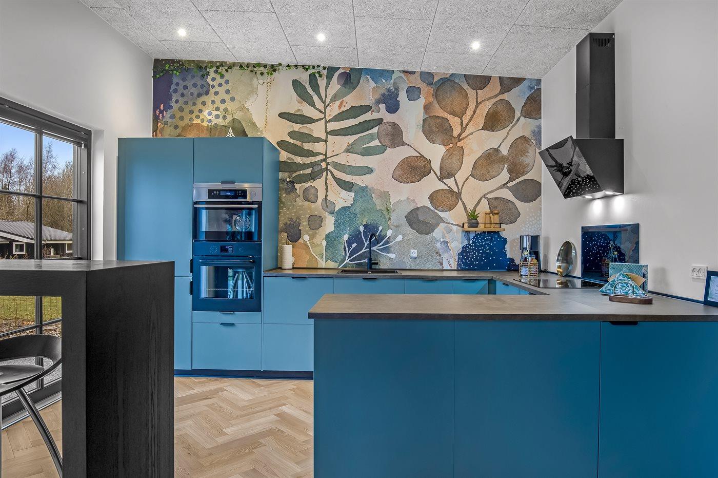 Køkkenet er udstyret med 1 køleskab. Der er 4 induktionskogeplader, varmluftovn, mikrobølgeovn samt opvaskemaskine.
