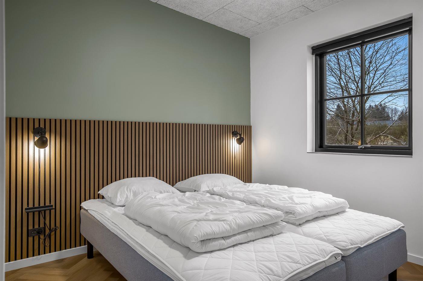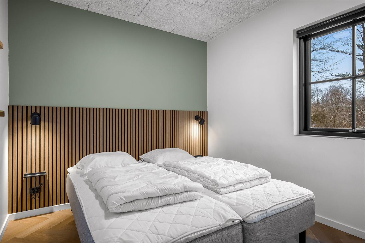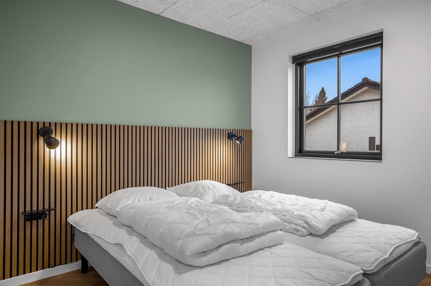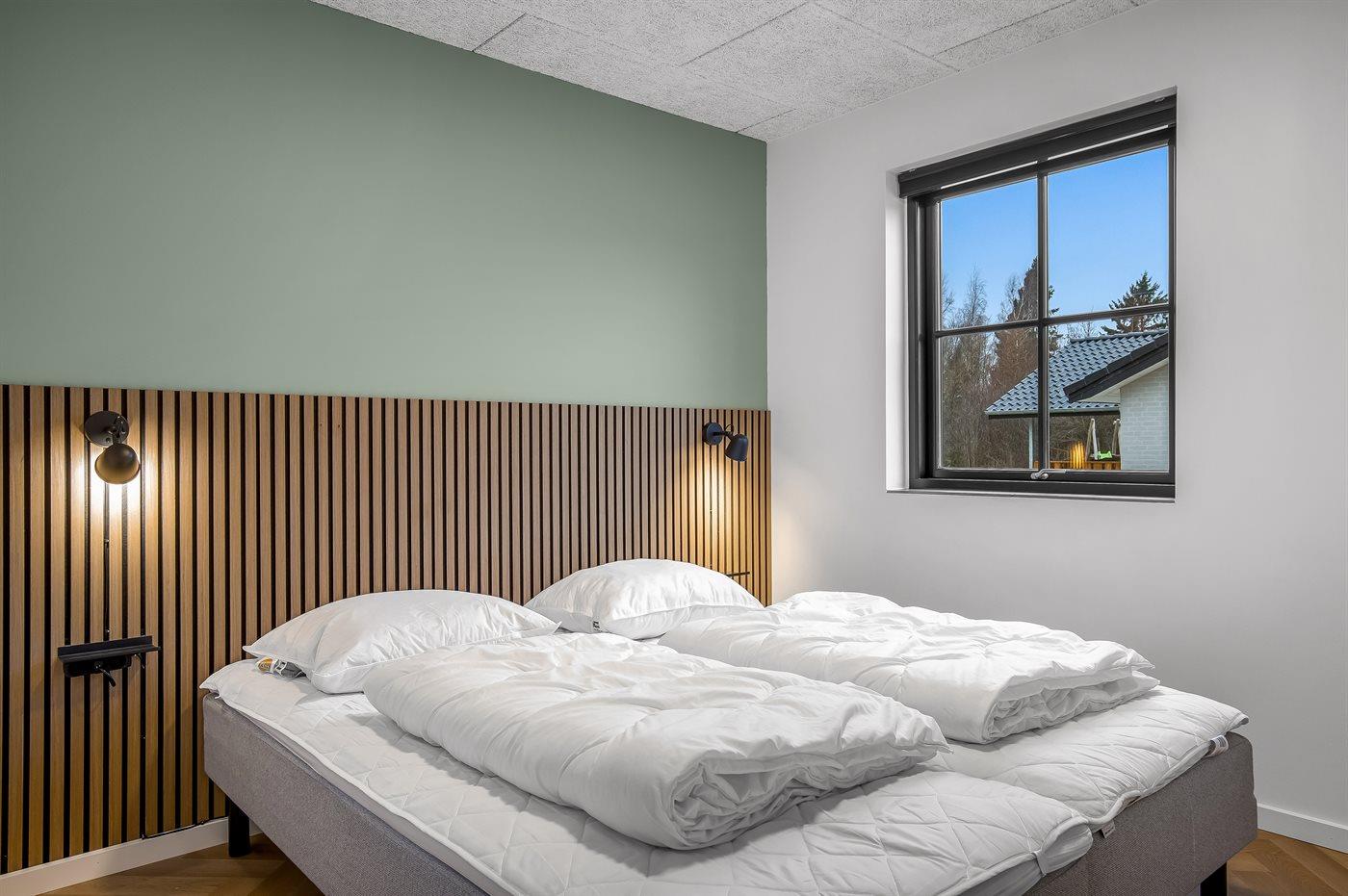 Der er i alt 5 soveværelser. Sovepladserne fordeler sig på: 10 sovepladser i dobbeltsenge. 2 sovepladser i sovesofa (dobbelt). 2 af disse sovepladser befinder sig i aktivitetsrummet. Derudover er der 1 stk. barneseng.