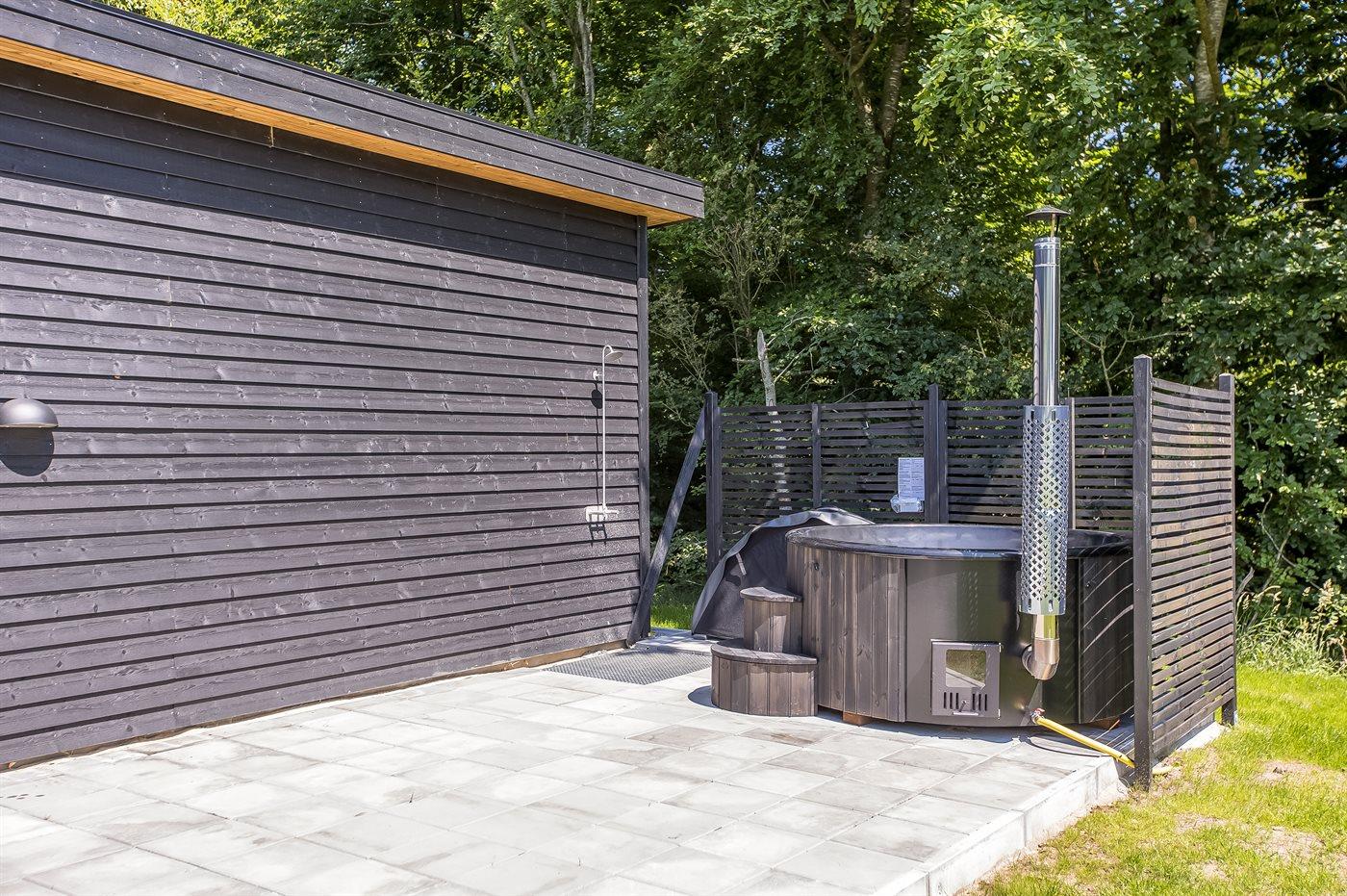 Der er mulighed for afslapning i det udendørs vildmarkskar til 6 personer.