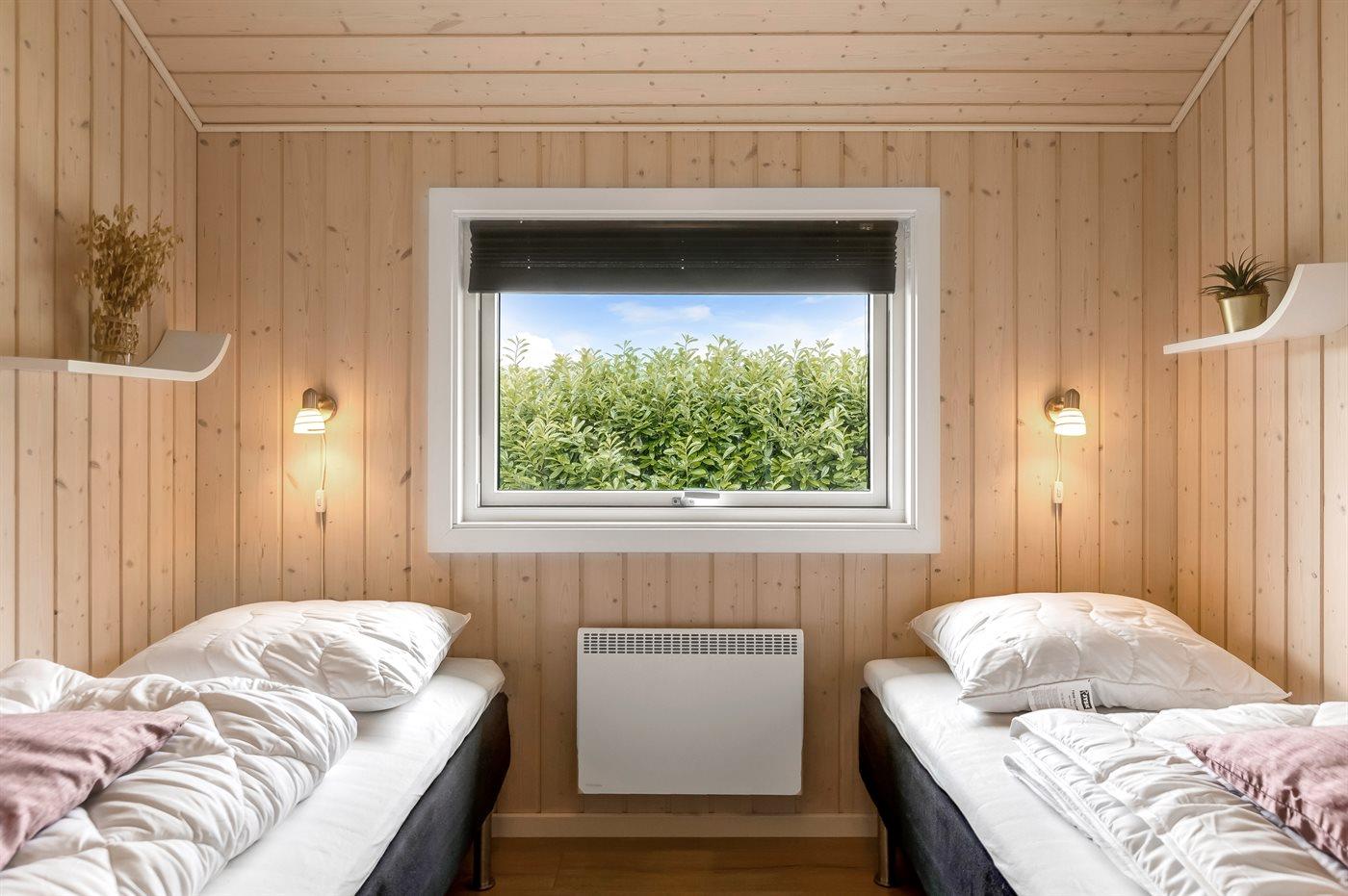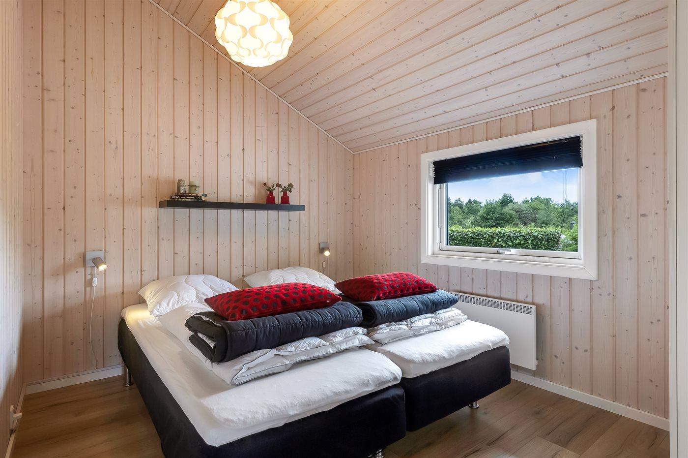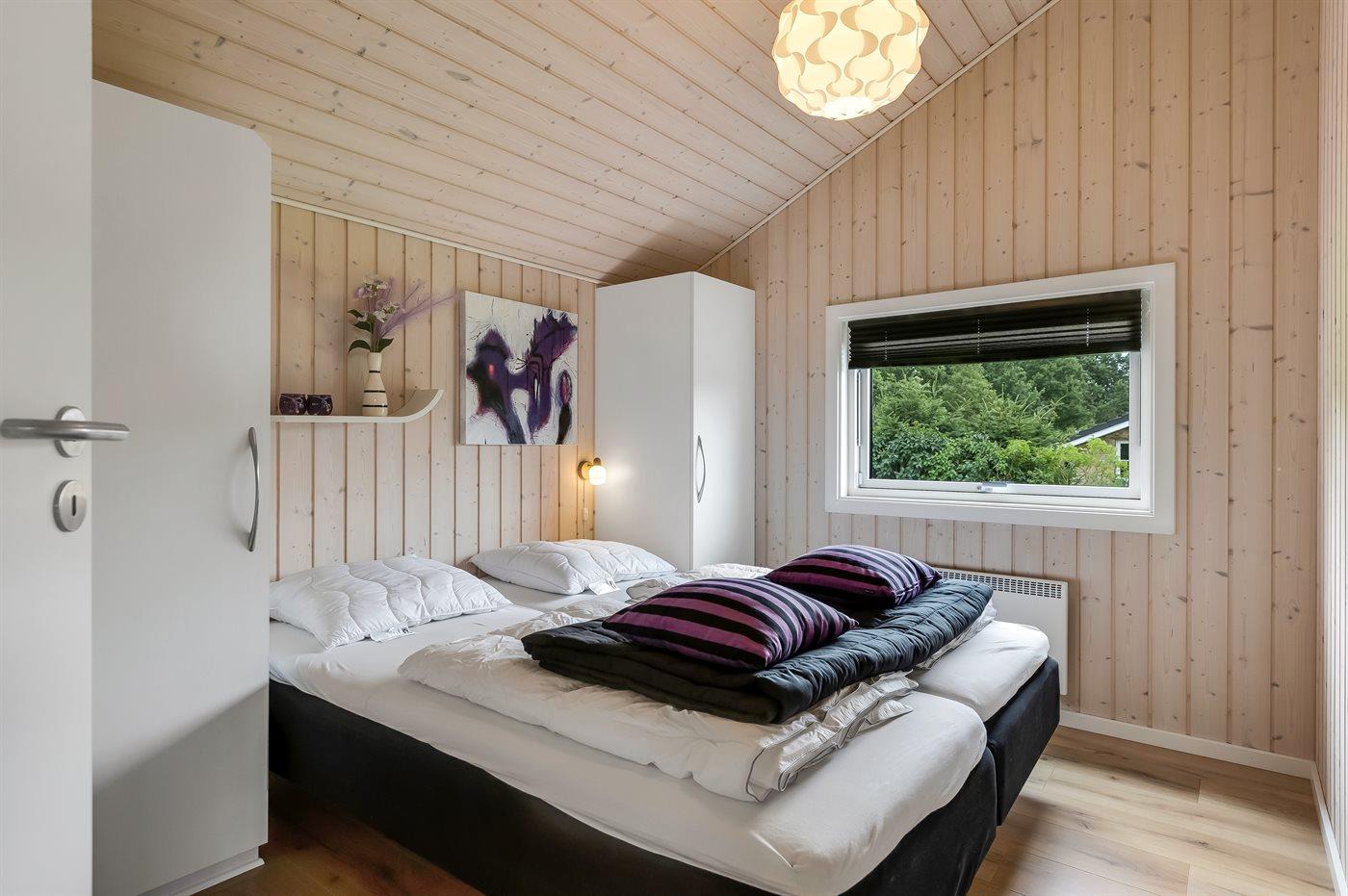 Der er i alt 3 soveværelser. Sovepladserne fordeler sig på: 4 sovepladser i dobbeltsenge. 2 sovepladser i enkeltsenge. 2 sovepladser i alkove. 2 af disse sovepladser befinder sig i stuen. Derudover er der 1 stk. barneseng.