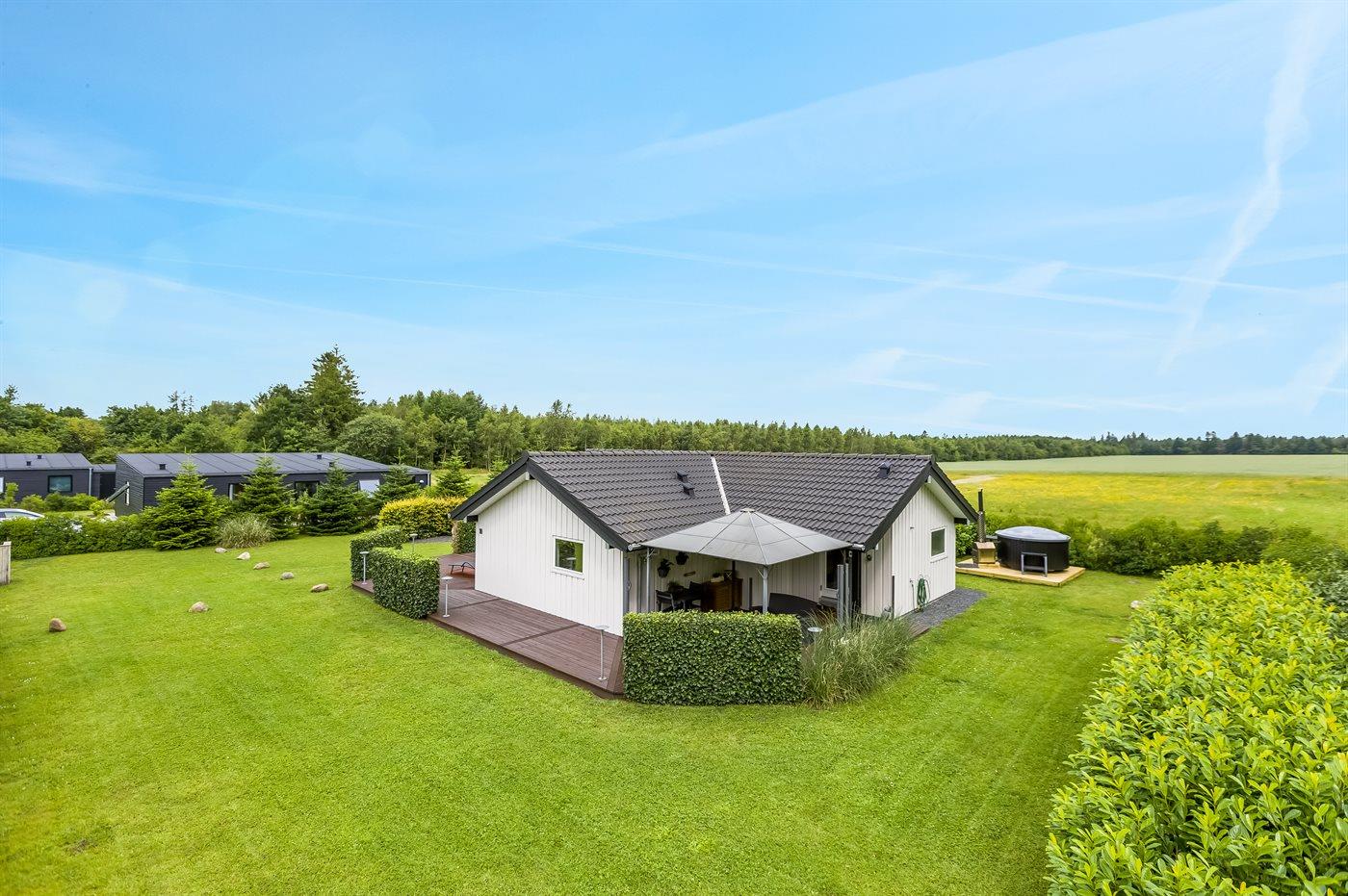 Flot sommerhus med ugenert udsigt over marker og naturskøn beliggenhed i Arrild, perfekt til afslapning og familietid.