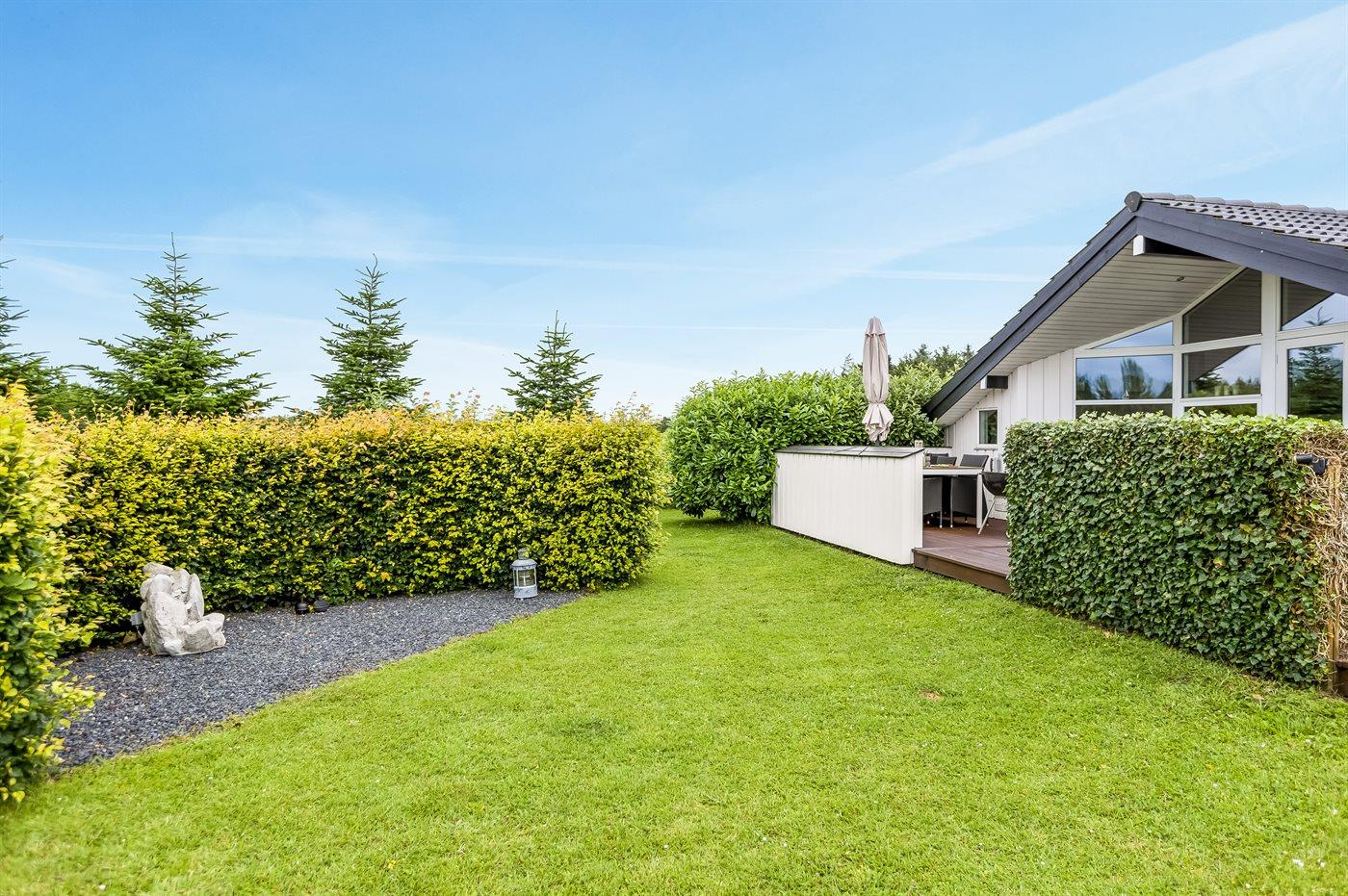 Ferieboligen er beliggende på en 875 m² stor naturgrund. Der er 30000 m til havet. Der er 20000 m til Vadehavet. Der er en sø i en afstand af 1000 m. Nærmeste forretning er beliggende i en afstand af 1200 m. Til ferieboligen hører åbent terrasseareal. Desuden er der overdækket terrasse. Grill til rådighed. Parkering ved ferieboligen.