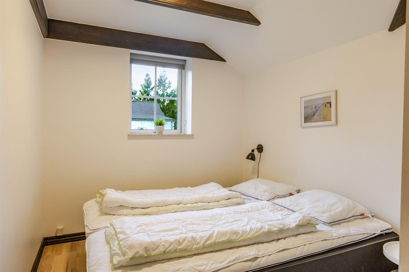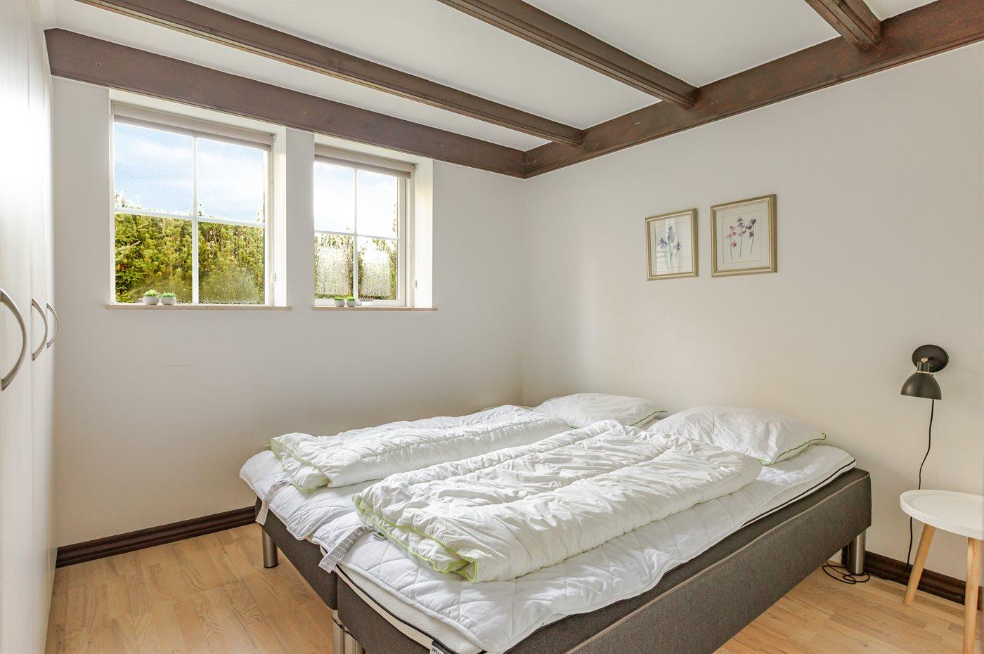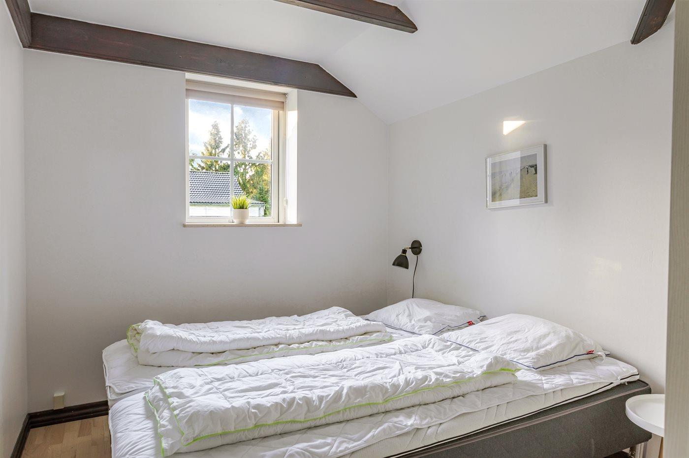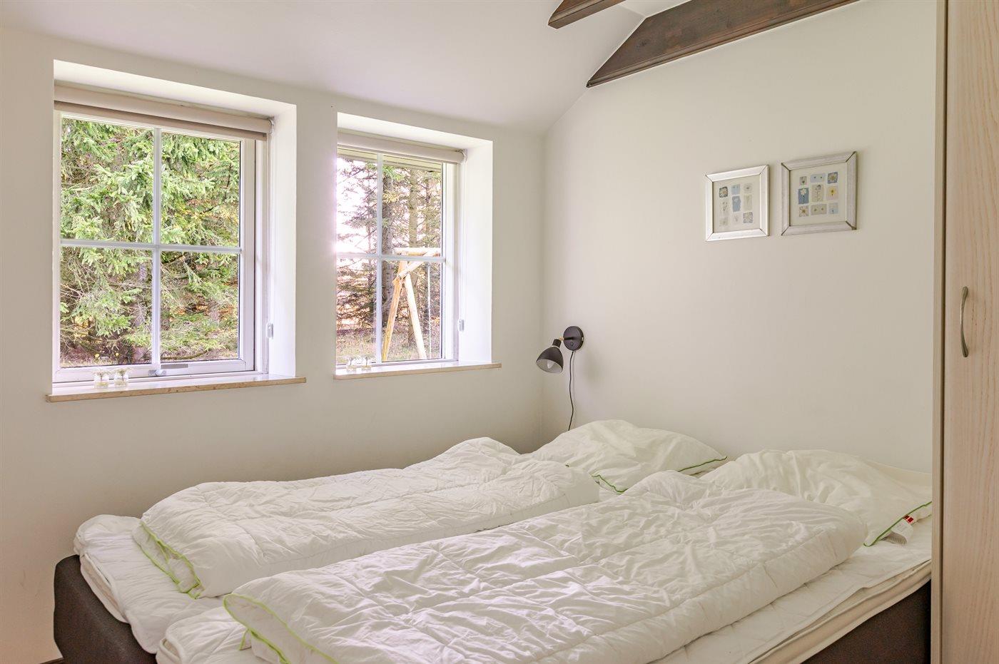 Der er i alt 3 soveværelser. Sovepladserne fordeler sig på: 6 sovepladser i dobbeltsenge. 2 sovepladser i enkeltsenge. 2 af disse sovepladser befinder sig på husets hems. Derudover er der 1 stk. barneseng.