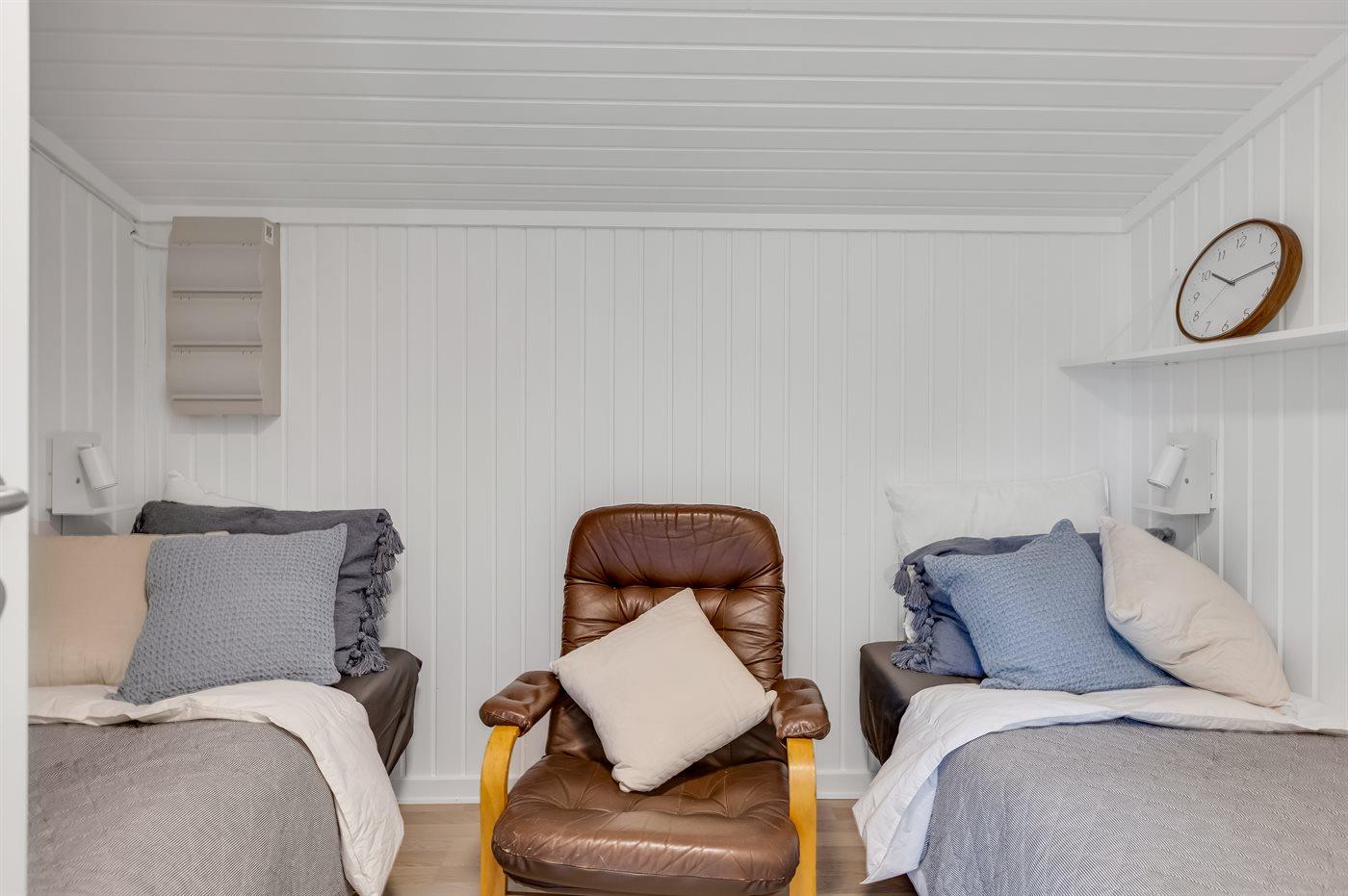 Der er i alt 3 soveværelser. Sovepladserne fordeler sig på: 2 sovepladser i dobbeltseng. 4 sovepladser i enkeltsenge. Derudover er der 1 stk. barneseng.