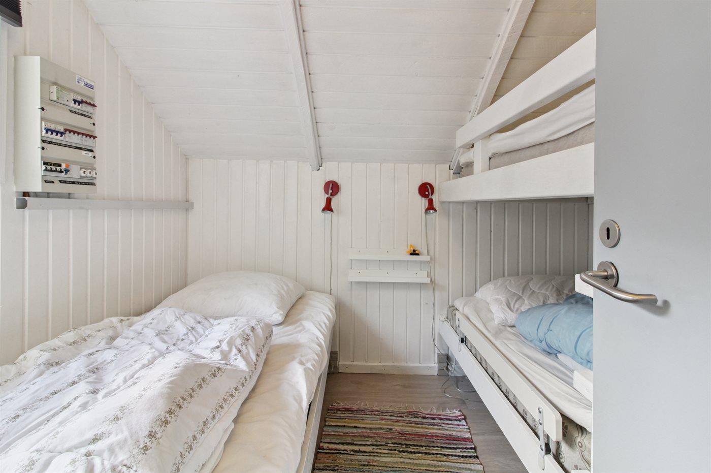 Der er i alt 4 soveværelser. Sovepladserne fordeler sig på: 4 sovepladser i dobbeltsenge. 3 sovepladser i enkeltsenge. 2 sovepladser i køjeseng. 2 af disse sovepladser befinder sig i et anneks. Derudover er der 1 stk. barneseng.